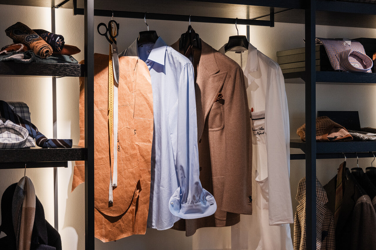 Zu den besonders erwähnenswerten Details der Handarbeit zählen vor allem die weiche neapolitanische Hemdenschulter - besser bekannt als Spalla Camicia - sowie die ungefütterten und federleicht verarbeiteten Sakkos. Hier wird jede Naht und jedes Knopfloch noch mit Hand genäht, was die ausnahmslose Exklusivität der Produkte manifestiert.