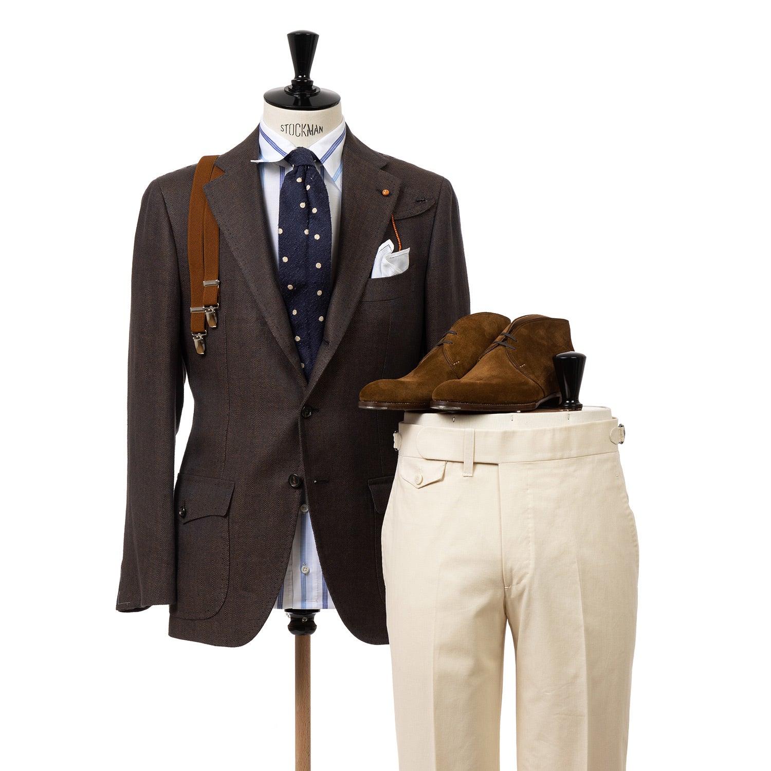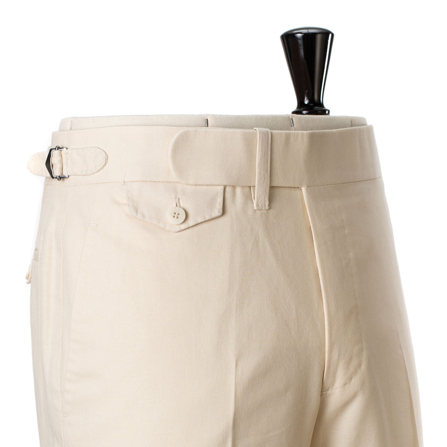 Eine wunderbare sartoriale Hose für die wärmere Jahreszeit. Perfekt ergänzt mit Hosenträgern von Albert Thurston!