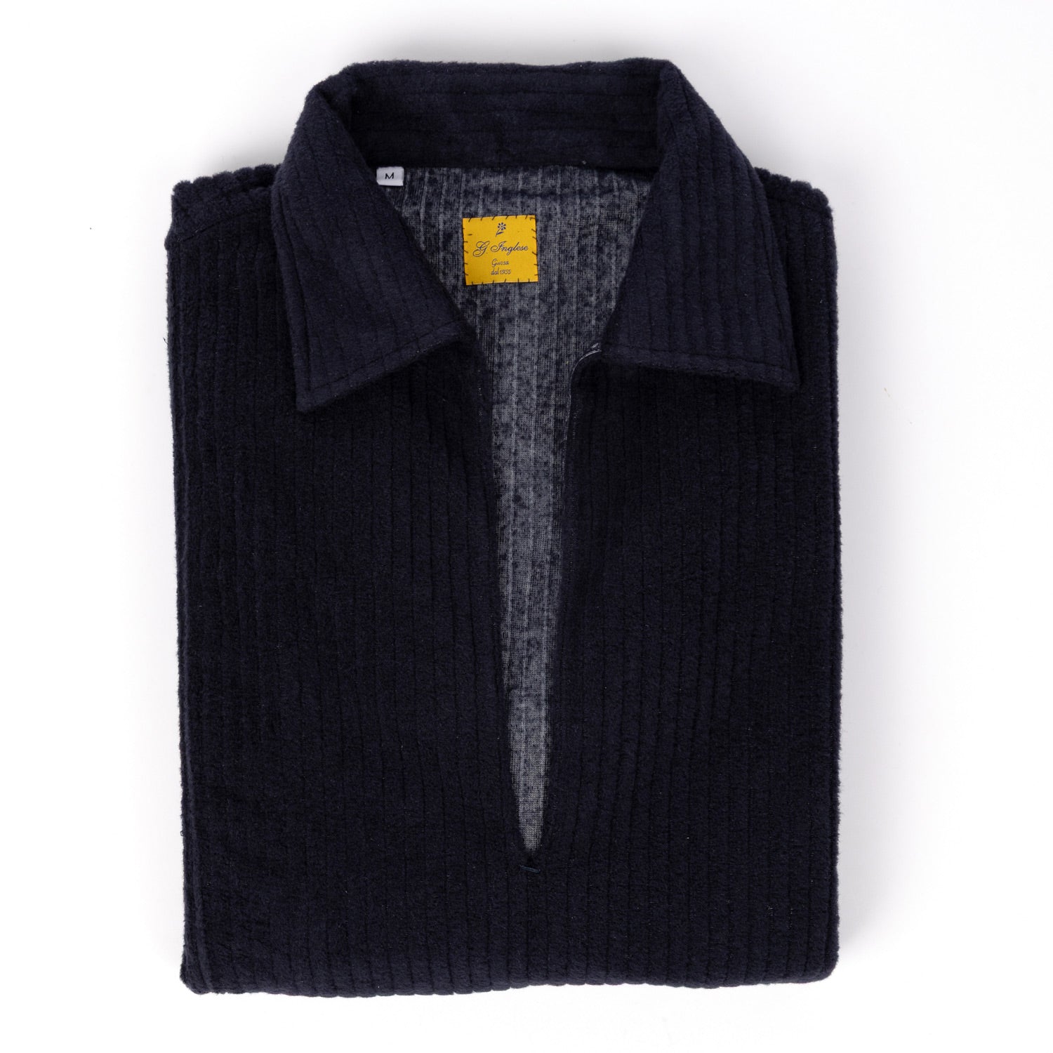 Handgenäht in der Werkstatt von Hemdenschneider G.Inglese, der mit seinen sartorial handwerklichen Poloshirts eine absolute Alleinstellung erlangt hat. Jedes einzelne Shirt ein echtes Meisterwerk, als ein Ergebnis von der Kultur Apuliens und detailorientierter Präzision, geschickter und fleißiger Hände.