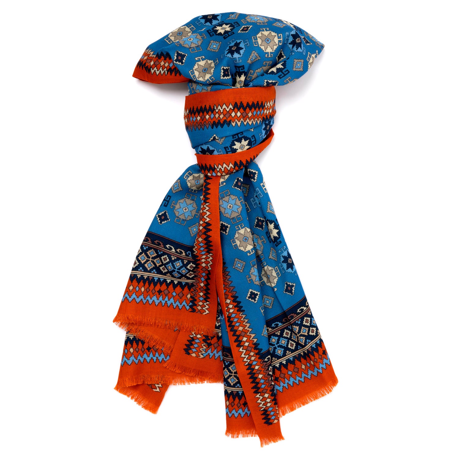 Ergänzend zu unser exklusiven Marinella-Auswahl bieten wir Ihnen hier einen Schal aus einem handbedruckten englischen Wollmix.
