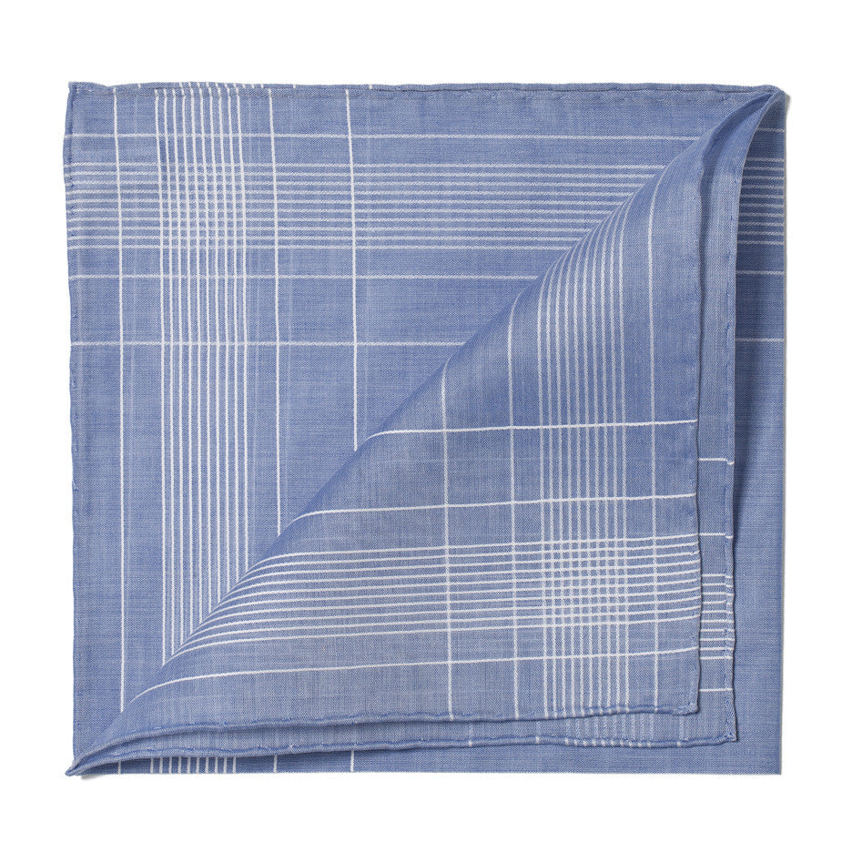 Dieses hellblau gemusterte Taschentuch von Simonnot Godard besticht durch seine Feinheit und zeugt von allerhöchster Qualität. Die Baumwolle wird in Frankreich gewebt und mit den handrollierten Kanten bietet das Tuch jeden Komfort für das Falten, Legen und Tragen.