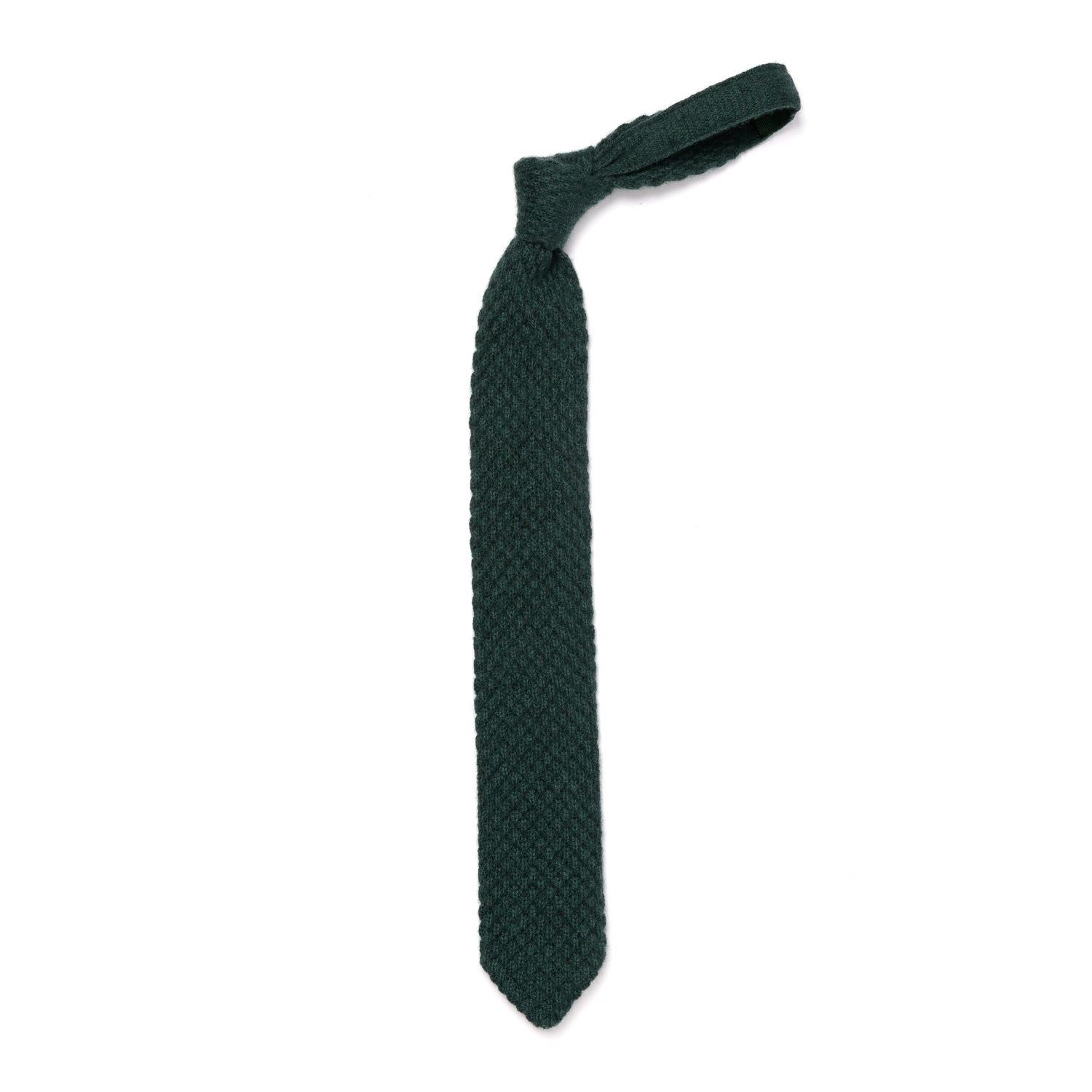 Unsere freundschaftliche Verbindung zur Inhaberfamilie Wollisch hat es uns ermöglicht, in der Werkstatt von Petronius, eine kleine Auflage an Strickkrawatten herstellen zu lassen. Das besondere an diesen Krawatte ist ihre spitze Form "A Punto" und das Warenbild "Crochet" in grober Häkeloptik. Eine Form, sie besonders in den 1960er Jahren beliebt war.