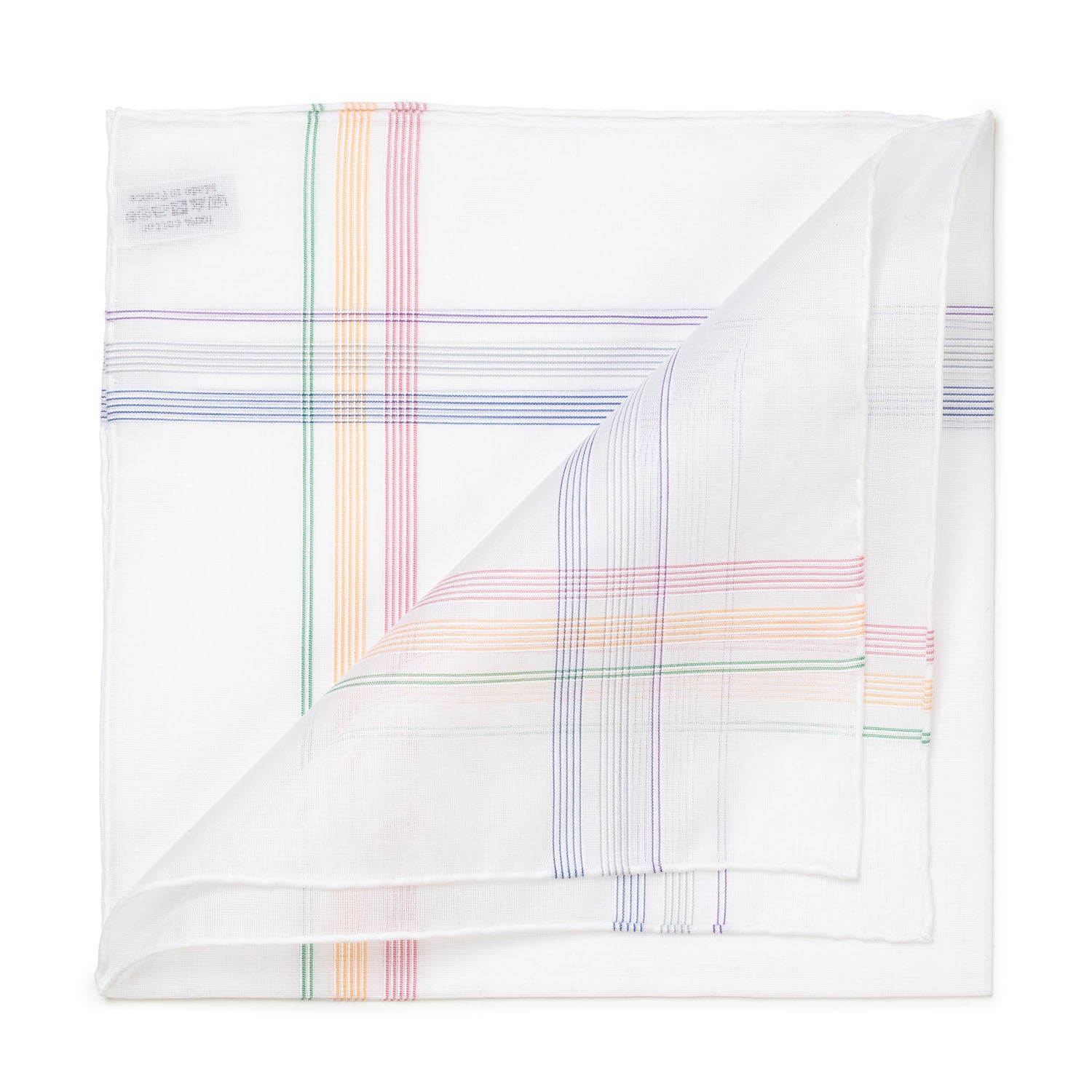 Weißes Taschentuch "Honfleur" aus Baumwolle mit farbigem Muster - Handrolliert