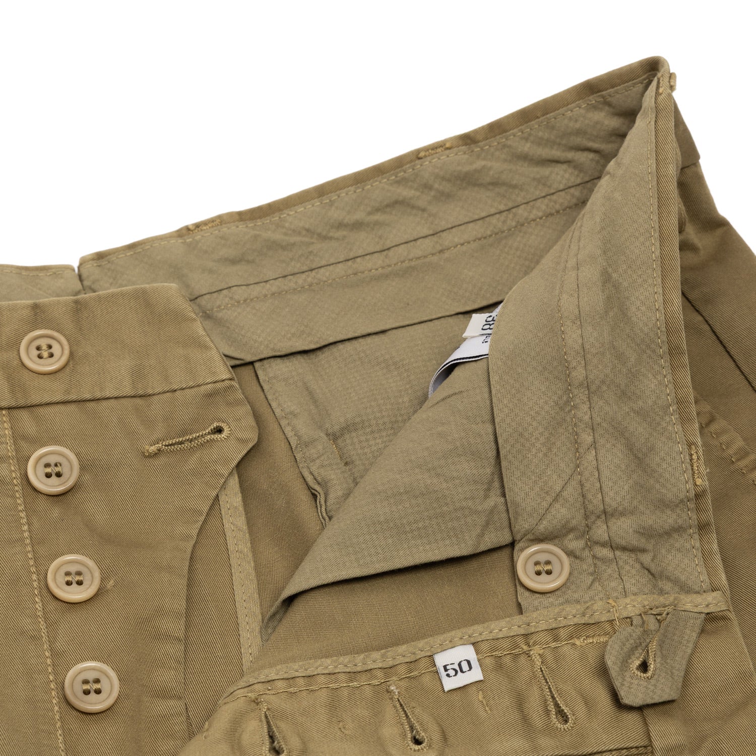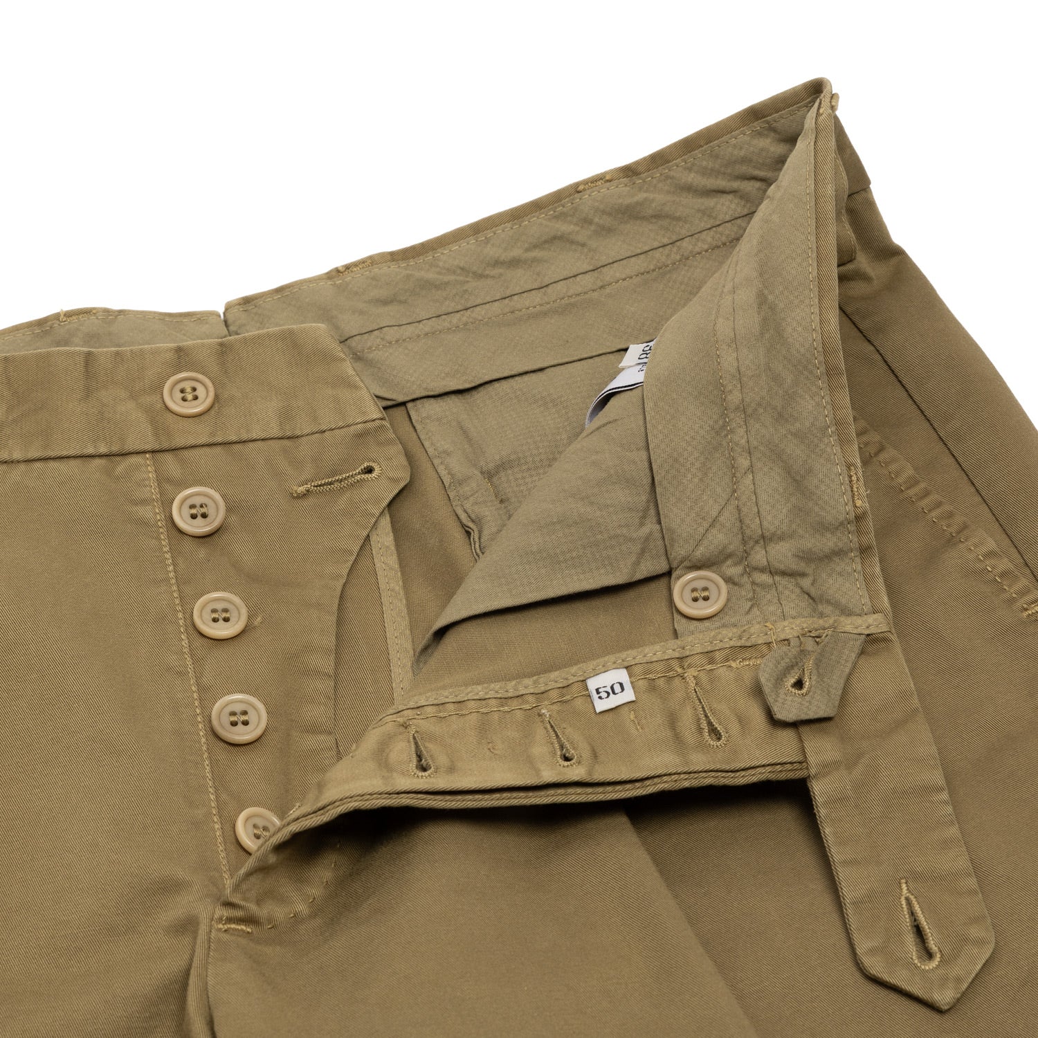 Die um 1,5cm erhöhte Leibhöhe, Bundfalten und Taschenpatten und das weitere Bein, sind die wesentlichen Merkmale dieses exklusiven MJ Modells, das seine Wurzeln in alten Sommer-Uniformen findet..