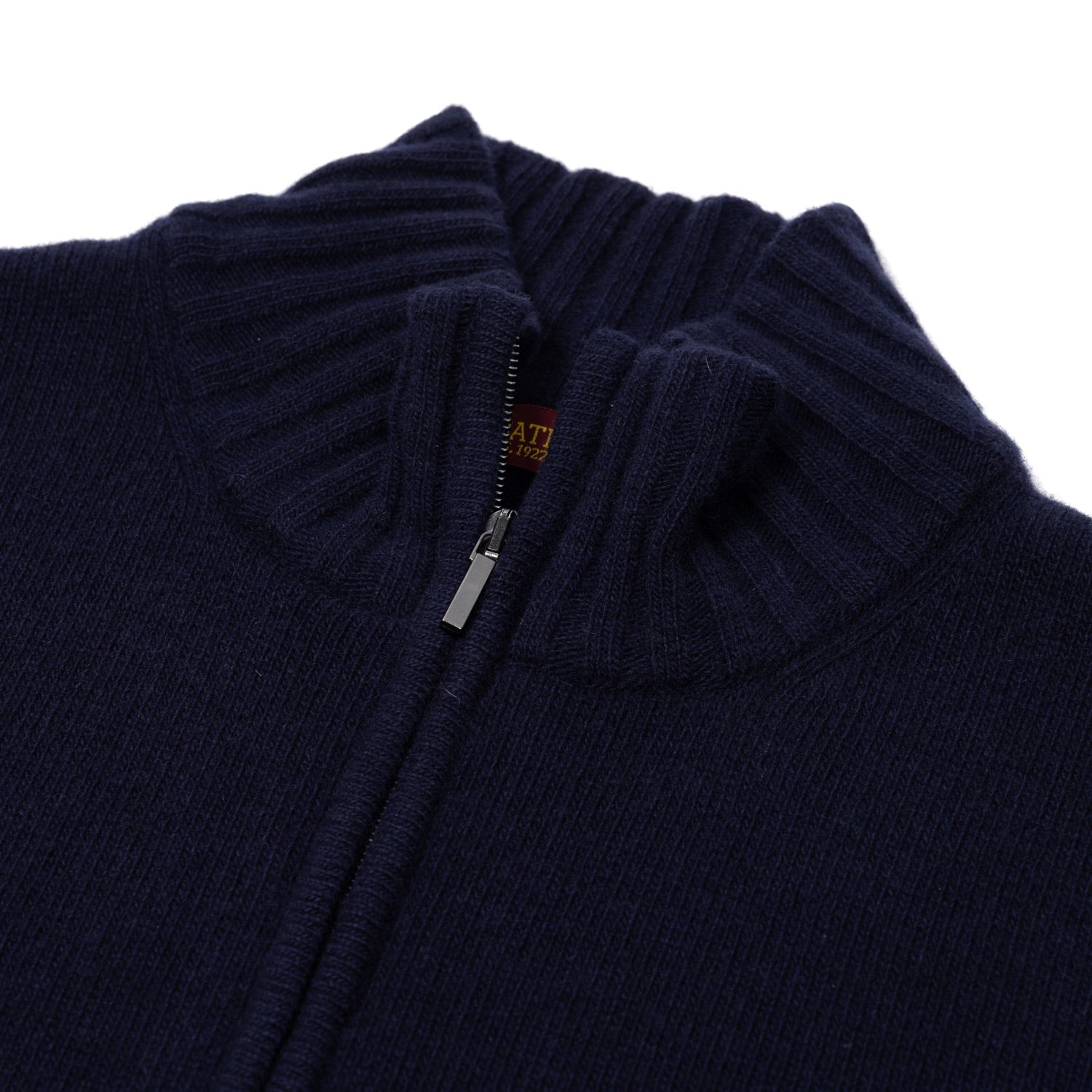 Hier ein Zip-Cardigan, der mit seinen gerippten Bündchen, wie im Besonderen durch den Stehkragen, eine besonders moderne Note bekommt. Natürlich Fully Fashioned verarbeitet.