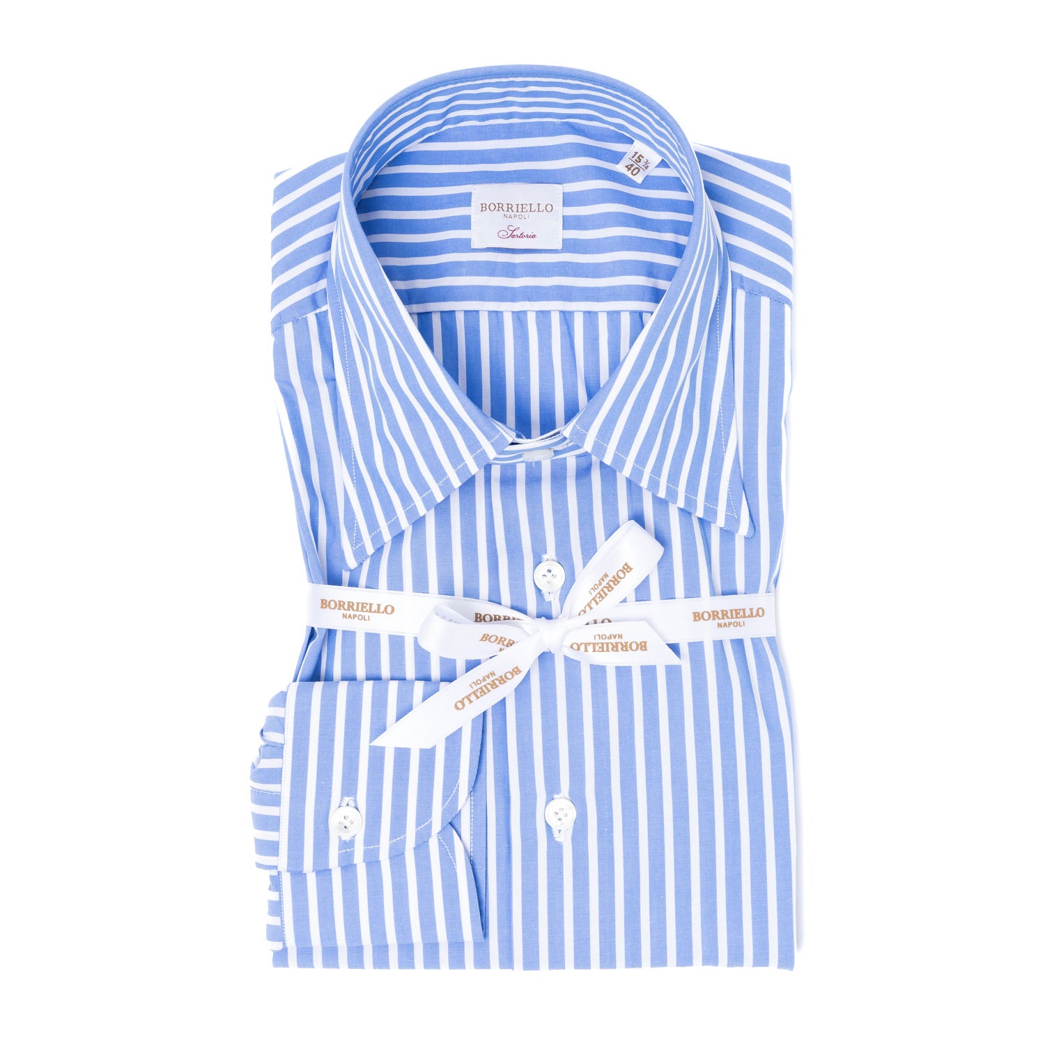 Ein großartiger Klassiker aus der Hemdenmanufaktur Borriello - Napoli. Seit 1977 fertigt Familie Borriello Hemden in traditionellem neapolitanischen Stil. Kragen und Schulter in reiner Handarbeit, sowie australische Perlmuttknöpfe und mit Seidengarn gestickte Knopflöcher sind nur ein teil von 8 Punkten, die in reiner Handarbeit verarbeitet werden.