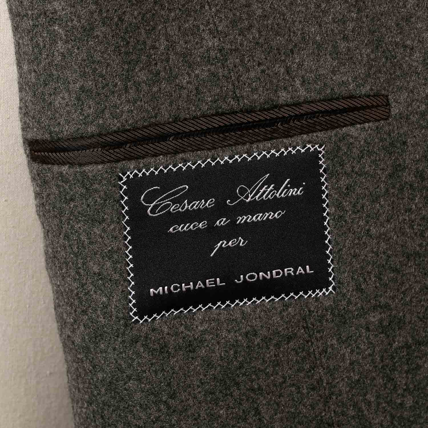 Typisches Detail ist der von Michael Jondral stets gewählte, rollierende und etwas breitere Revers. Markenzeichen des neapolitanischen Sakkos, das dem Träger eine perfekte Silhouette verleihen.