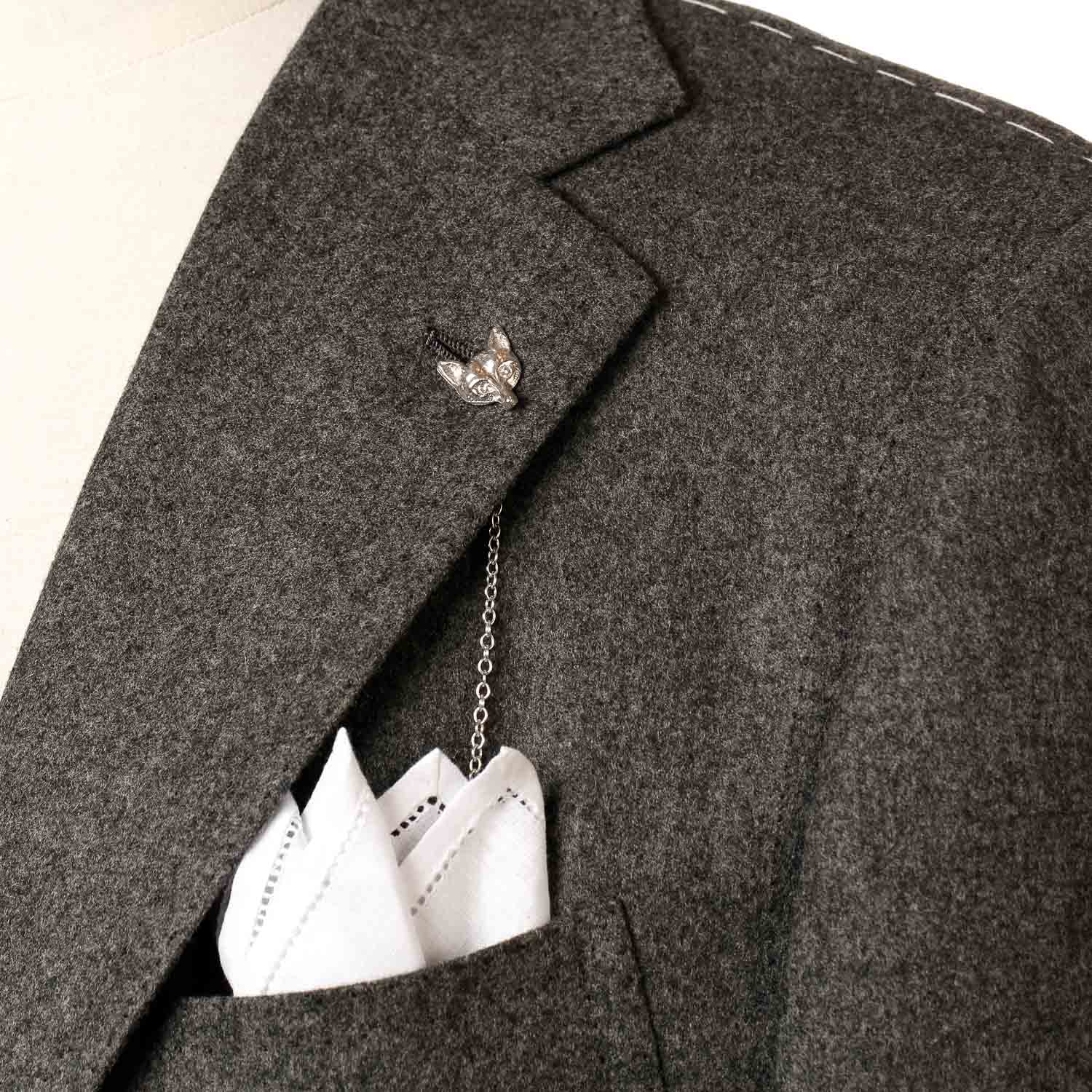 Ein Anzug, ganz im Zeichen von unseren Vorbildern und Gentleman-Iconen, wie dem ewig eleganten Ronald Colman oder dem frühen Marcello Mastroianni. Der Flanell von Fox Brother's war ebenso ein preferiertes Material von Gianni Agnelli, der an Stil nicht zu übertreffen war. Die besondere Note des "Flanella Pipi" ist ene Nuance grünbrauner Schimmer, der gem Flanellgrau eine exzellente Note verleiht. Ein Flanell, wie nur die legendäre Weberei Fox Brother's ihn herstellen kann!