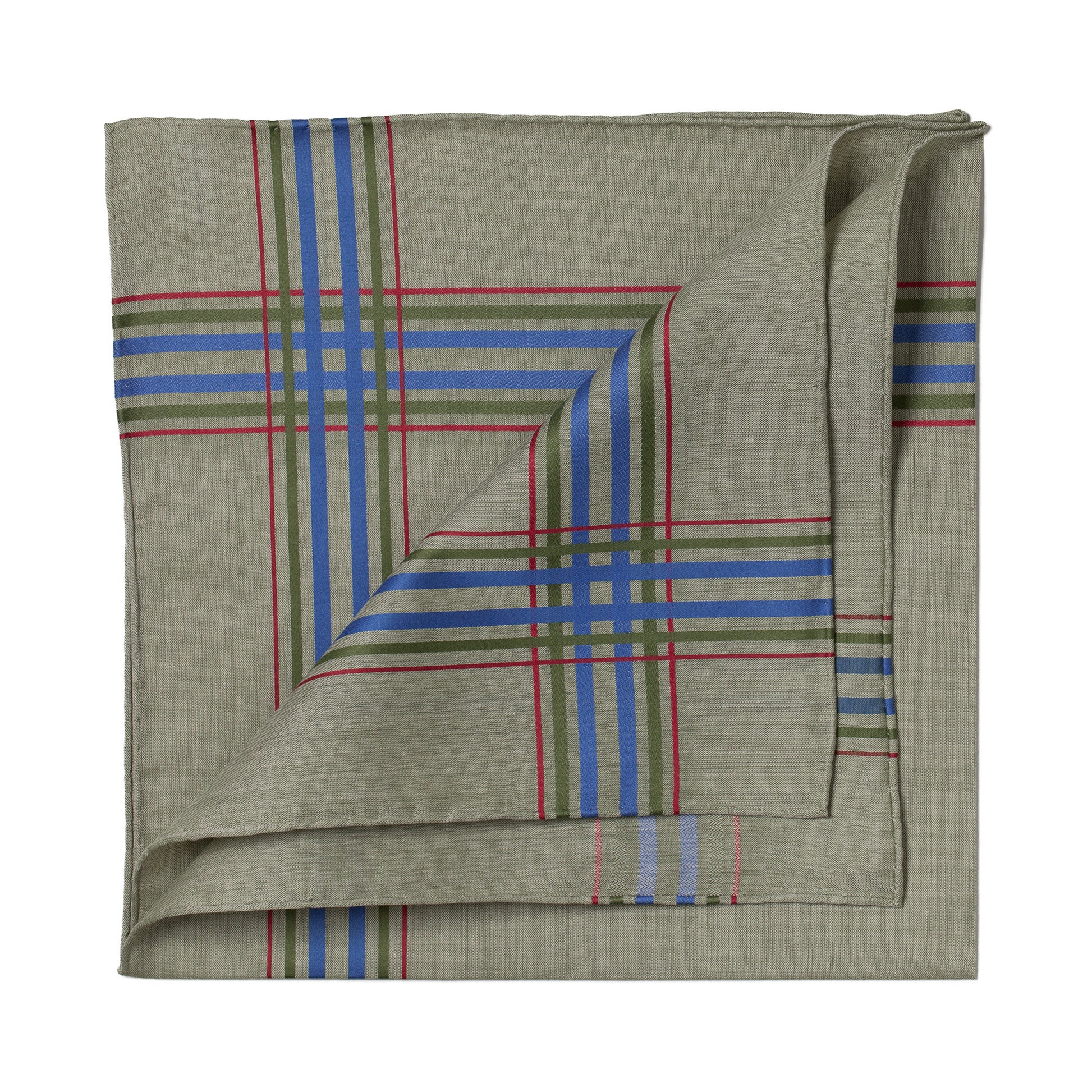 Grün gemustertes Taschentuch "Montmartre" aus Baumwolle mit farbigem Karo - Handrolliert