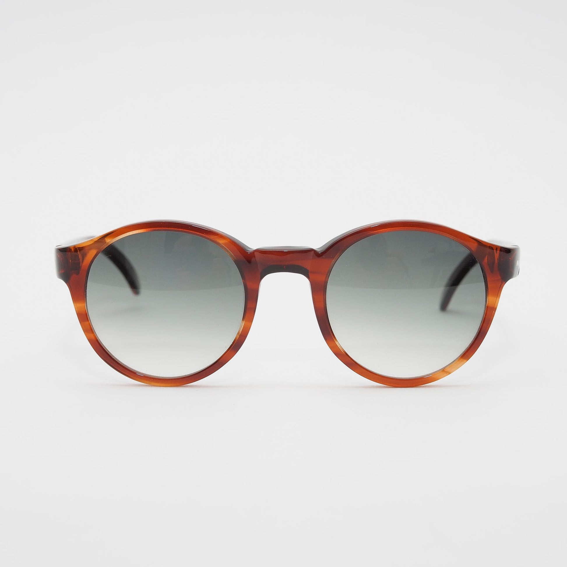Eine Sonnenbrille in abgerundeter Panto-Form als moderne Interpretation einer Brillenform, wie sie schon von Schriftsteller Truman Capote oder dem großartigen Künstler David Hockney getragen wurden.
