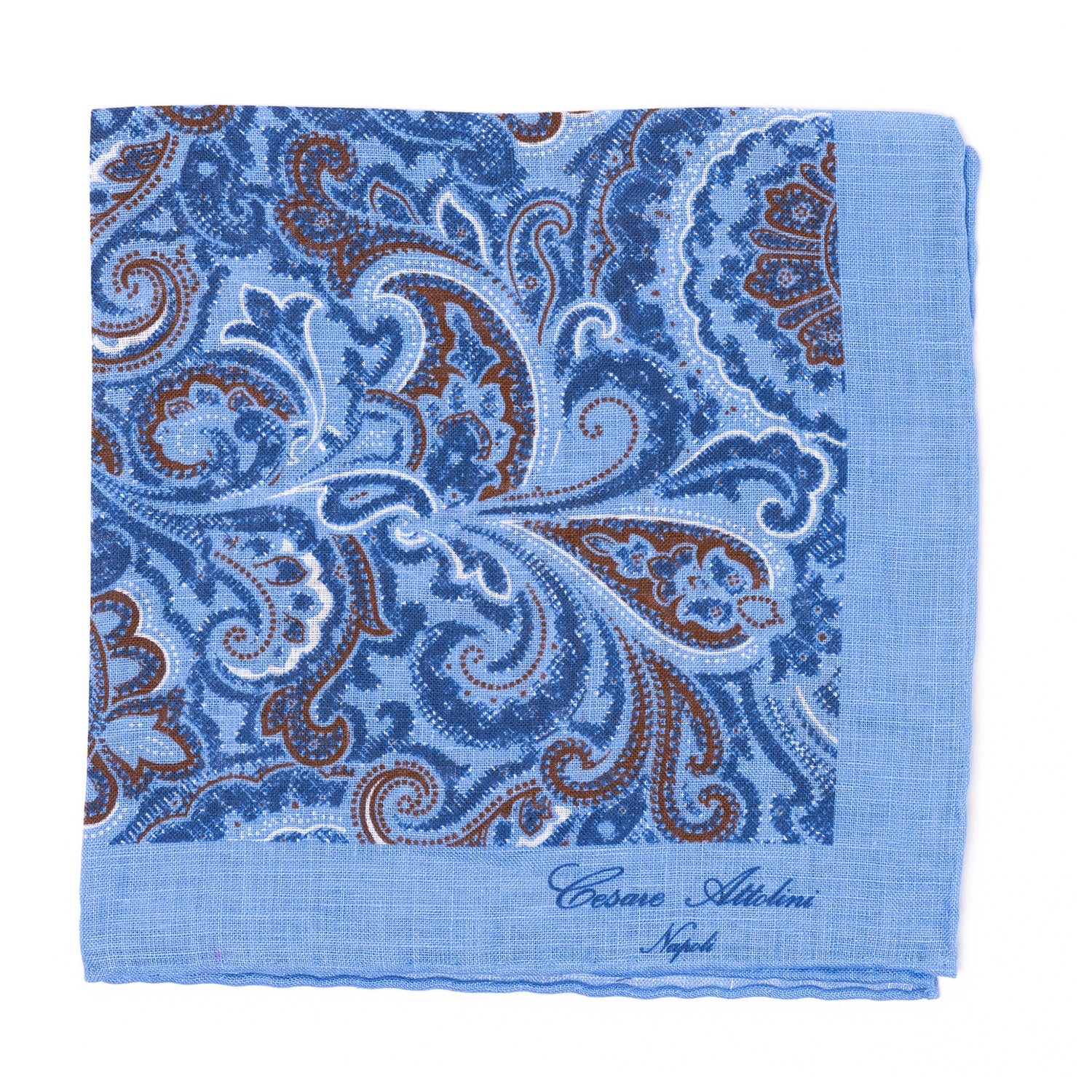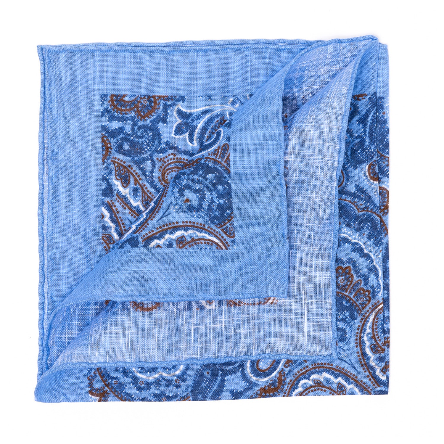 Limited Edition: Einstecktuch "Paisley Turco" aus reinem Leinen - Handrolliert