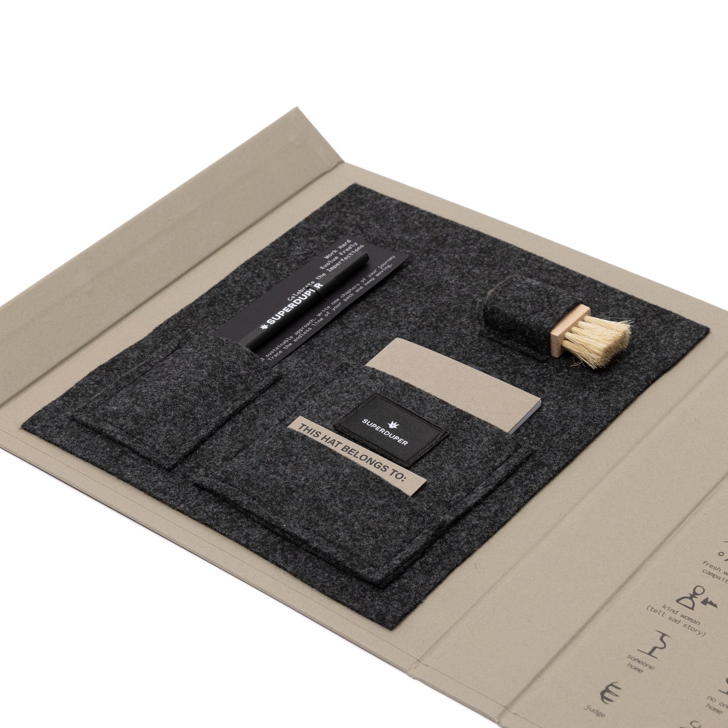 Einzigartig, genau wie unsere Hüte selbst, gewährleisten diese Steine die Authentizität jeder SUPERDUPER-Kreation und symbolisieren die Verbindung des Trägers mit der Natur.