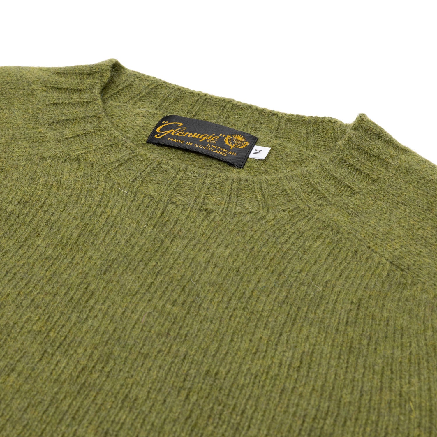 Glenugie's tiny knitting mill specializes in knitting Shetland knitwear. The yarns are washed with sea water in the special climate of Aberdeen's hinterland before knitting, giving them an unusually soft feel for Shetland sweaters. A very special specialty of Glenugie, which gets its subtly sporty stitch pattern "Flat Knit" by knitting on the particularly old circular knitting machines.
