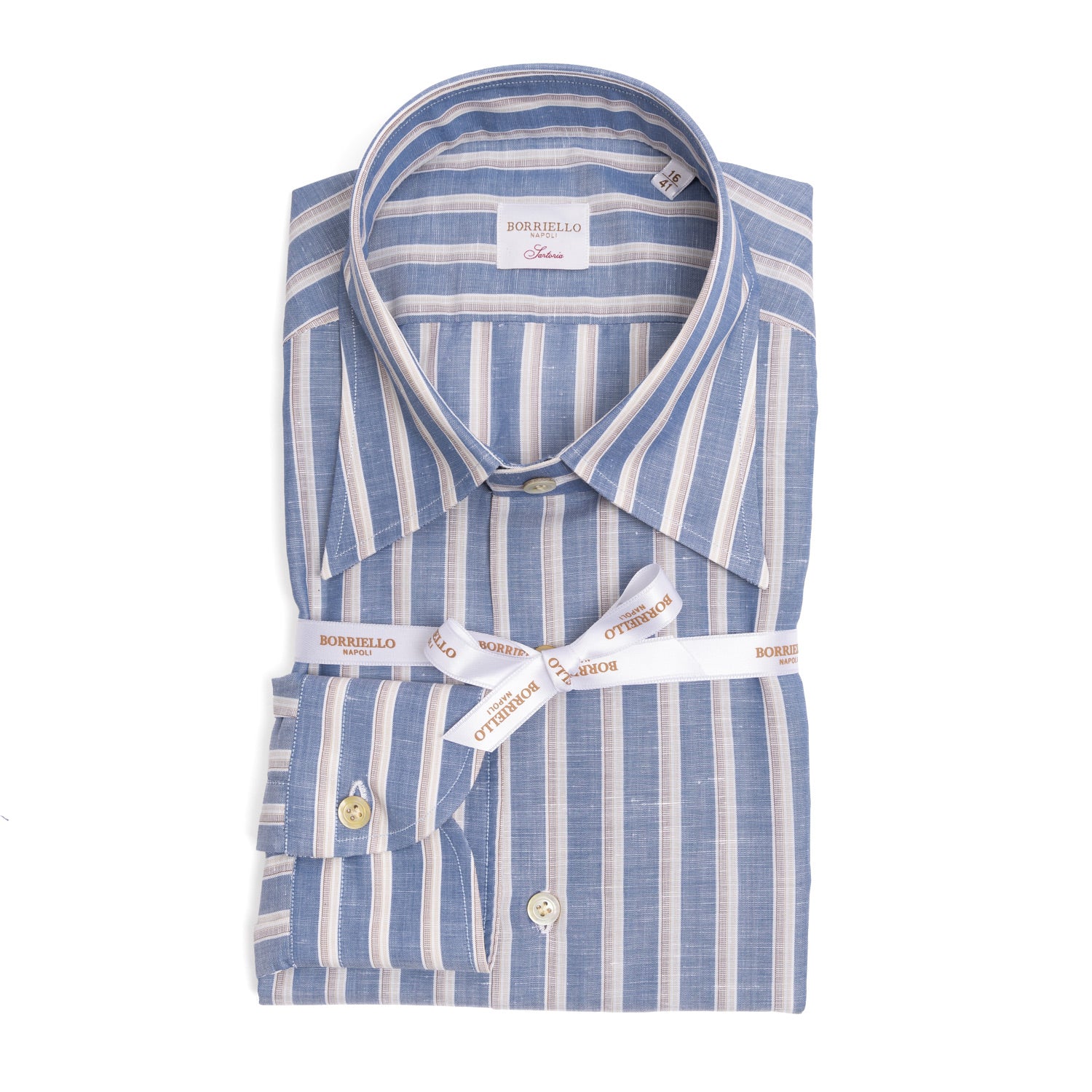 A great classic from the Borriello - Napoli shirt manufactory. The Borriello family has been making shirts in the traditional Neapolitan style since 1977. Collar and shoulder in pure handwork, as well as Australian mother-of-pearl buttons and buttonholes embroidered with silk thread are only a part of 8 points that are processed in pure handwork.