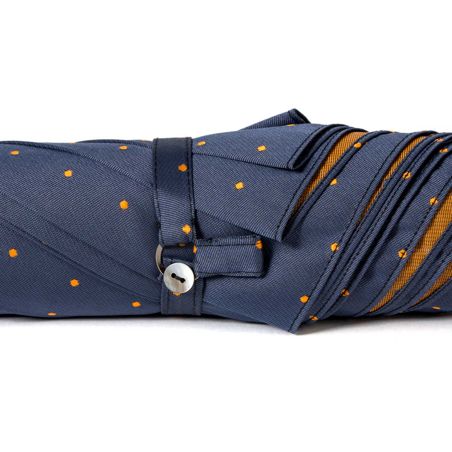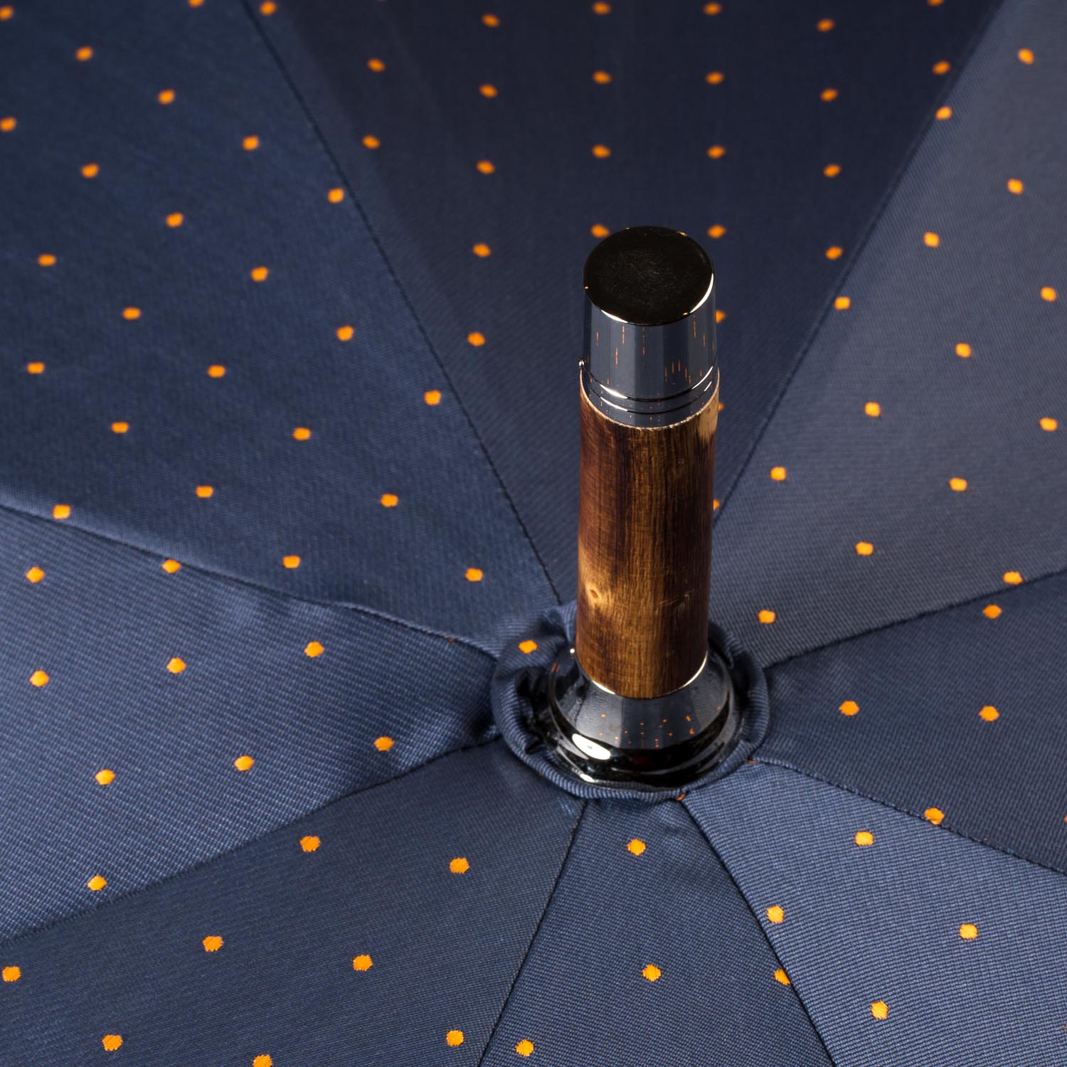 Blue Umbrella with Light Brown Dots and Handle made of Chestnut Wood