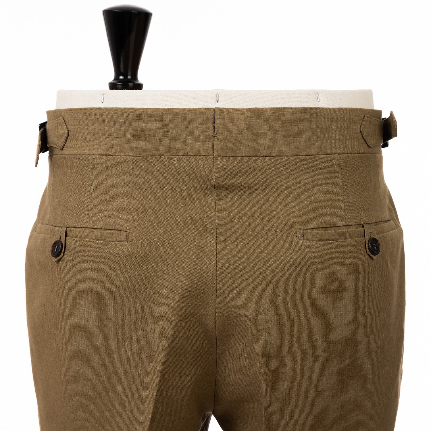 • 2 back pockets with buttoned loop "Linguetta