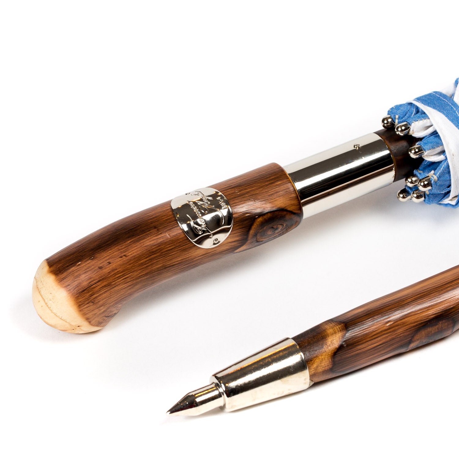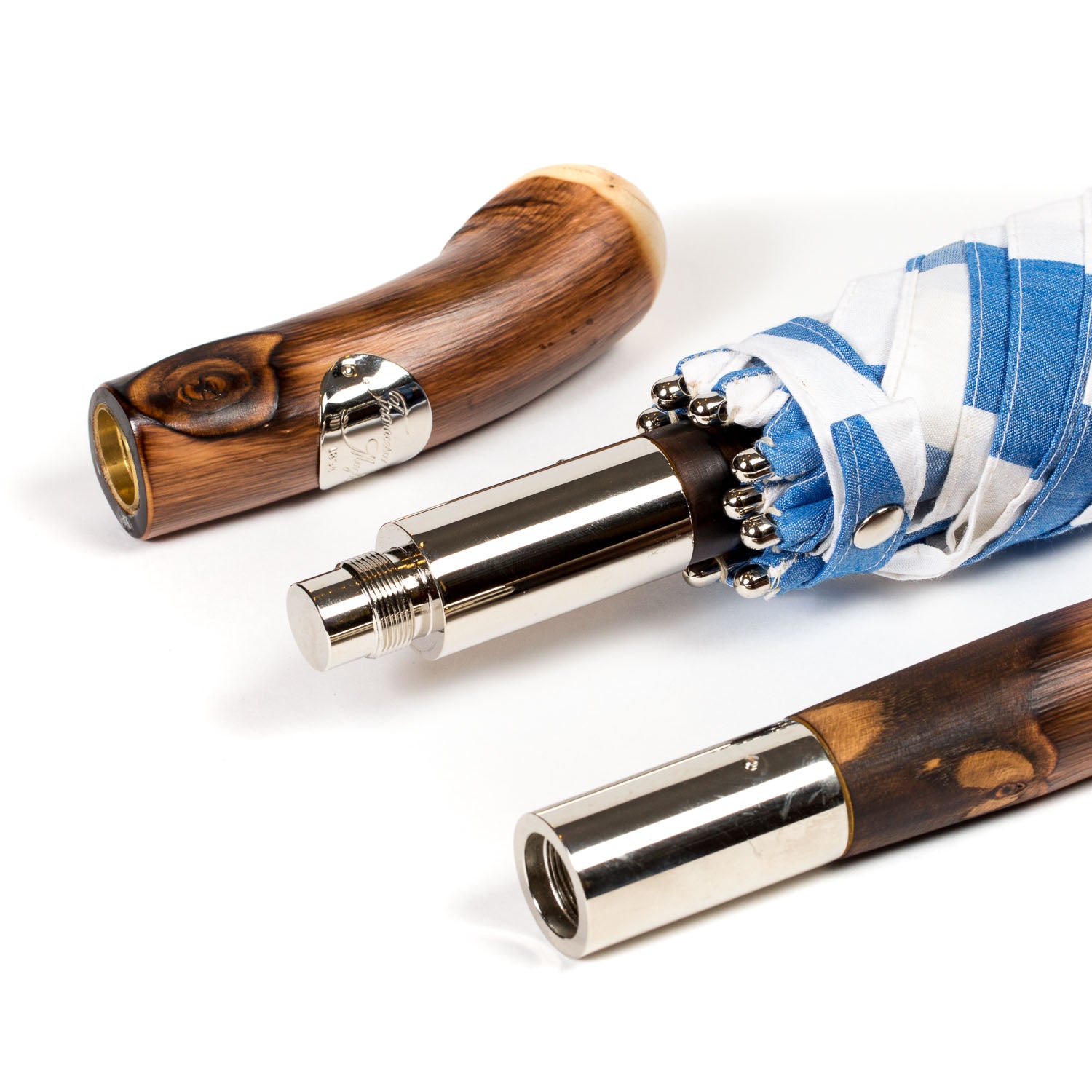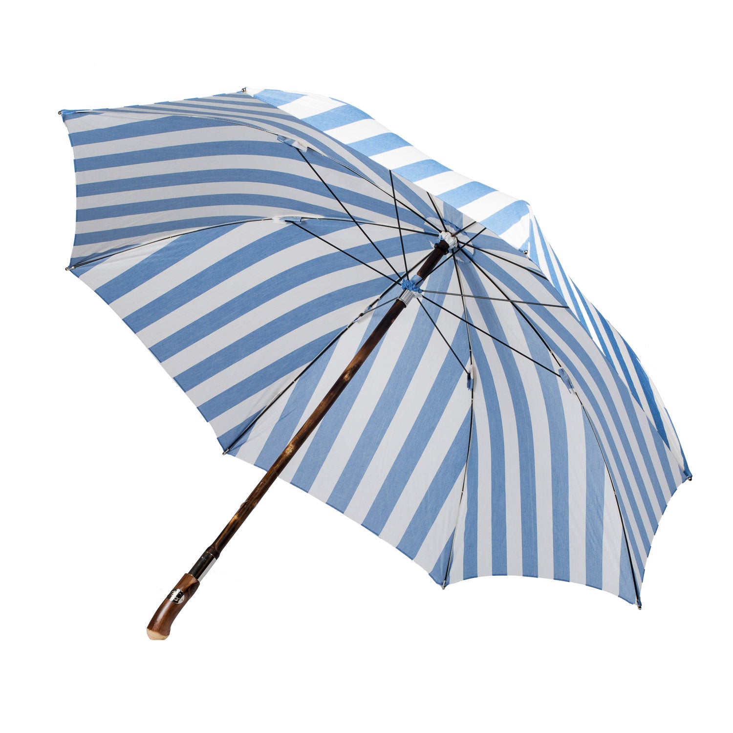 Striped Beach Umbrella "Picknick" with Handle made of Chestnut Root