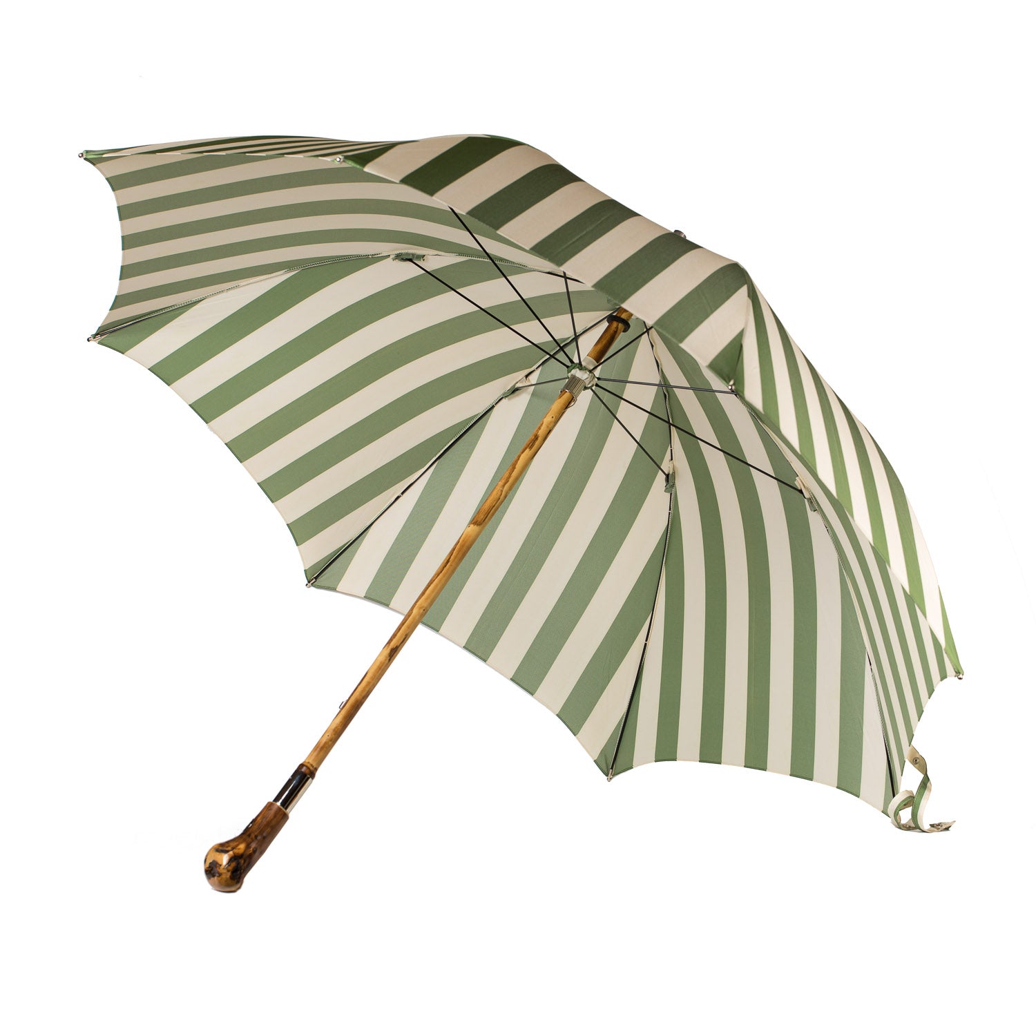 Striped Beach Umbrella "Picknick" with Handle made of Chestnut Root