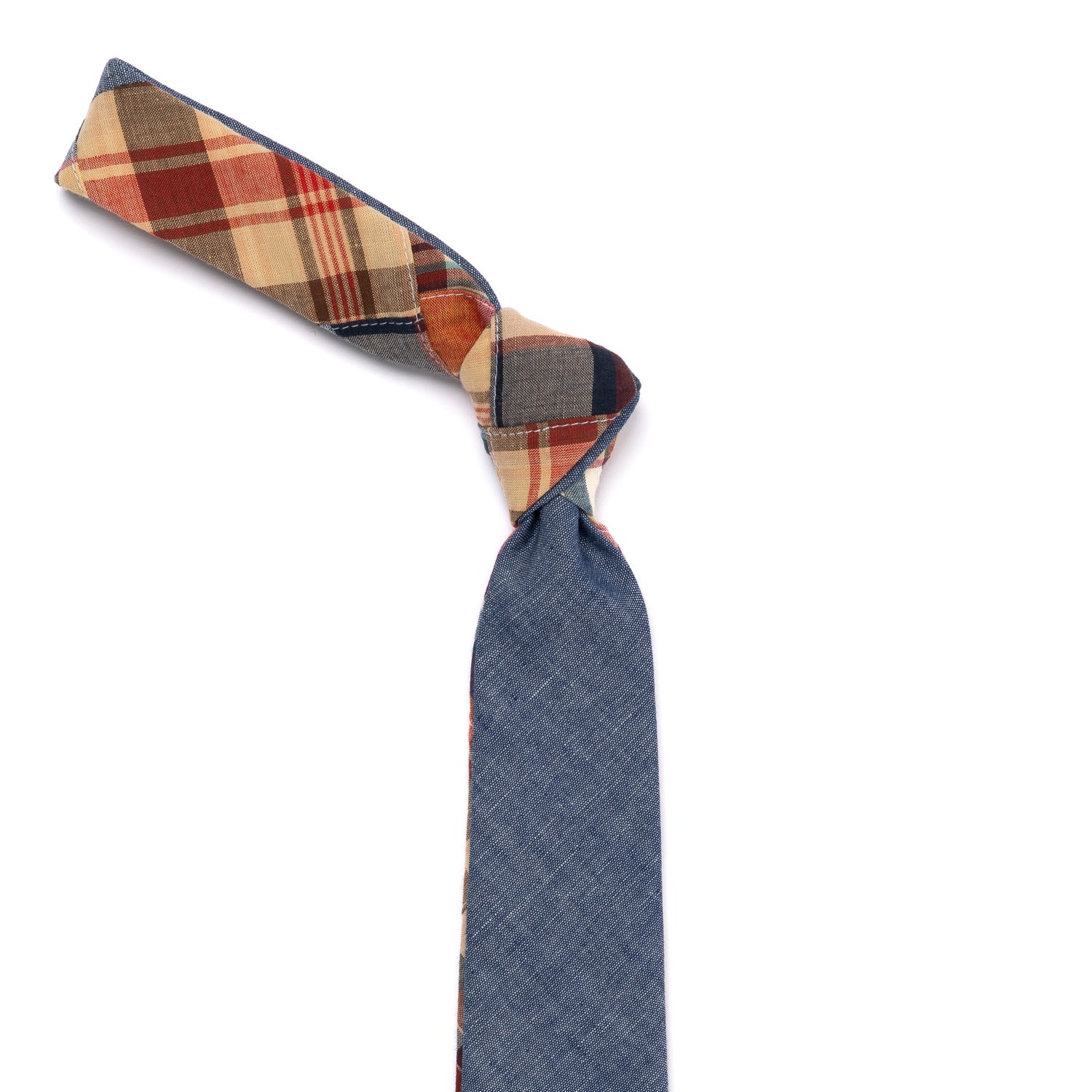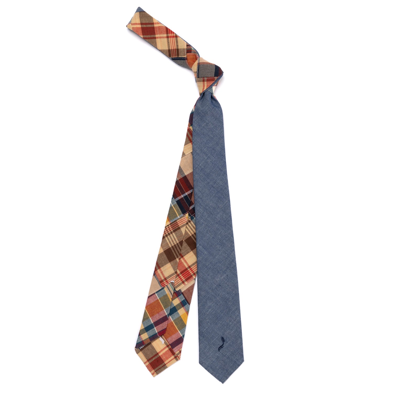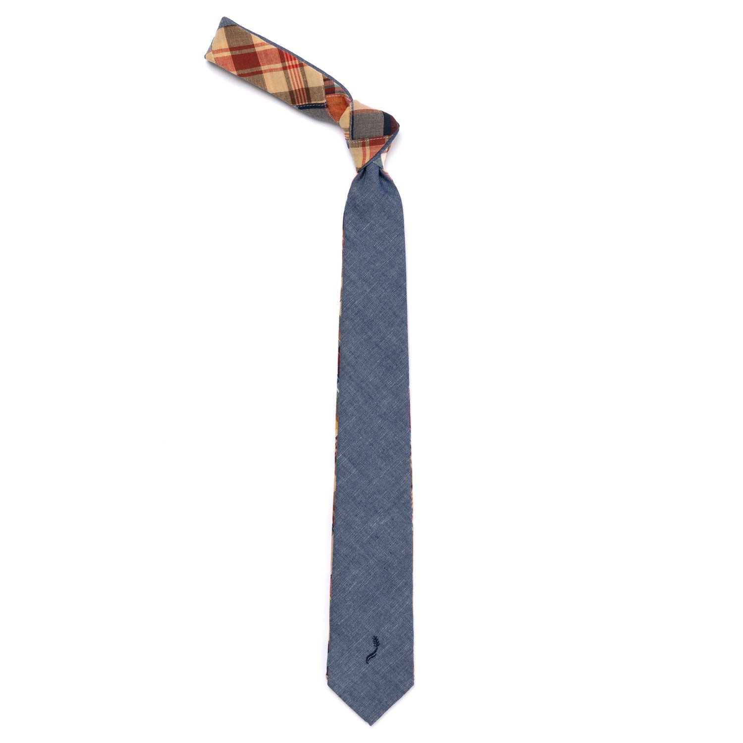 A tie with historical value and a very special spirit in this two-face finish of madras check and chambray!