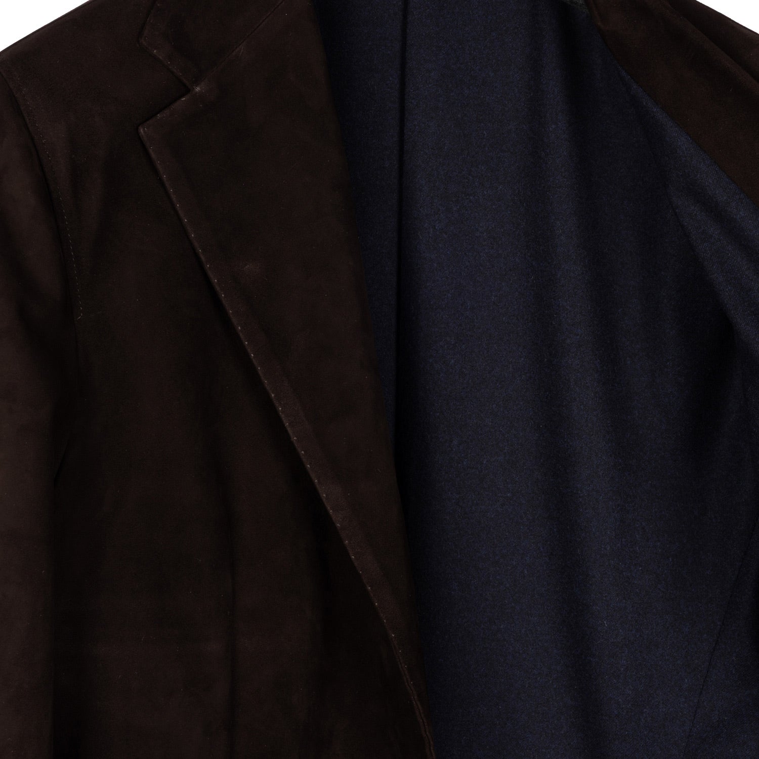 Here is a jacket in sartorial jacket style, made from the finest Tuscan lambskin suede. The leather has been left in its natural hide thickness and lined with a wool flannel. A jacket that is wonderfully comfortable to wear and a great companion for the slightly cooler season.