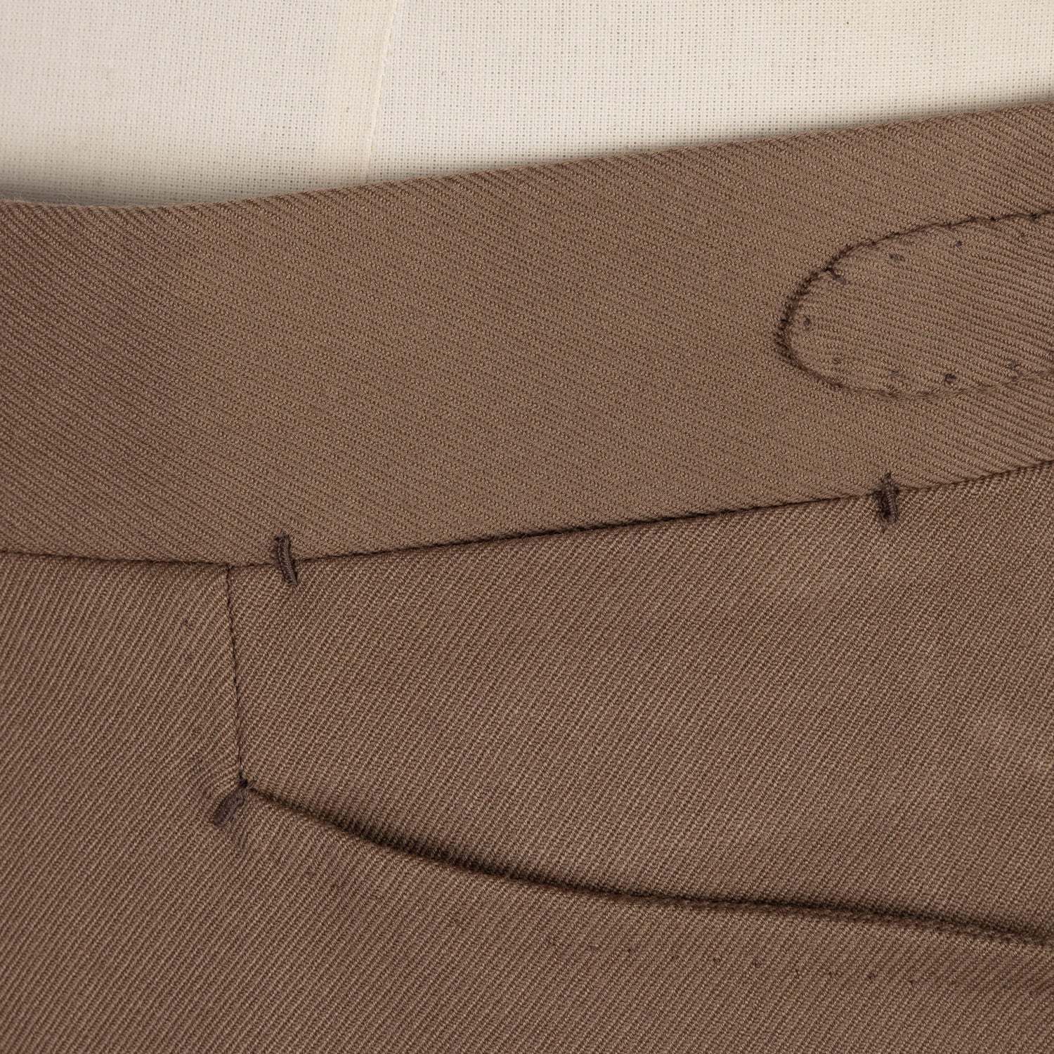 The processing of these pants represents the "high end" of trouser tailoring. 10 hours of pure handwork from Cesare Attolini's trouser atelier are visible in every detail and are particularly evident in the "Carrettiera" front pockets, which combine the art of tailoring with the traditional trousers worn by horsemen.