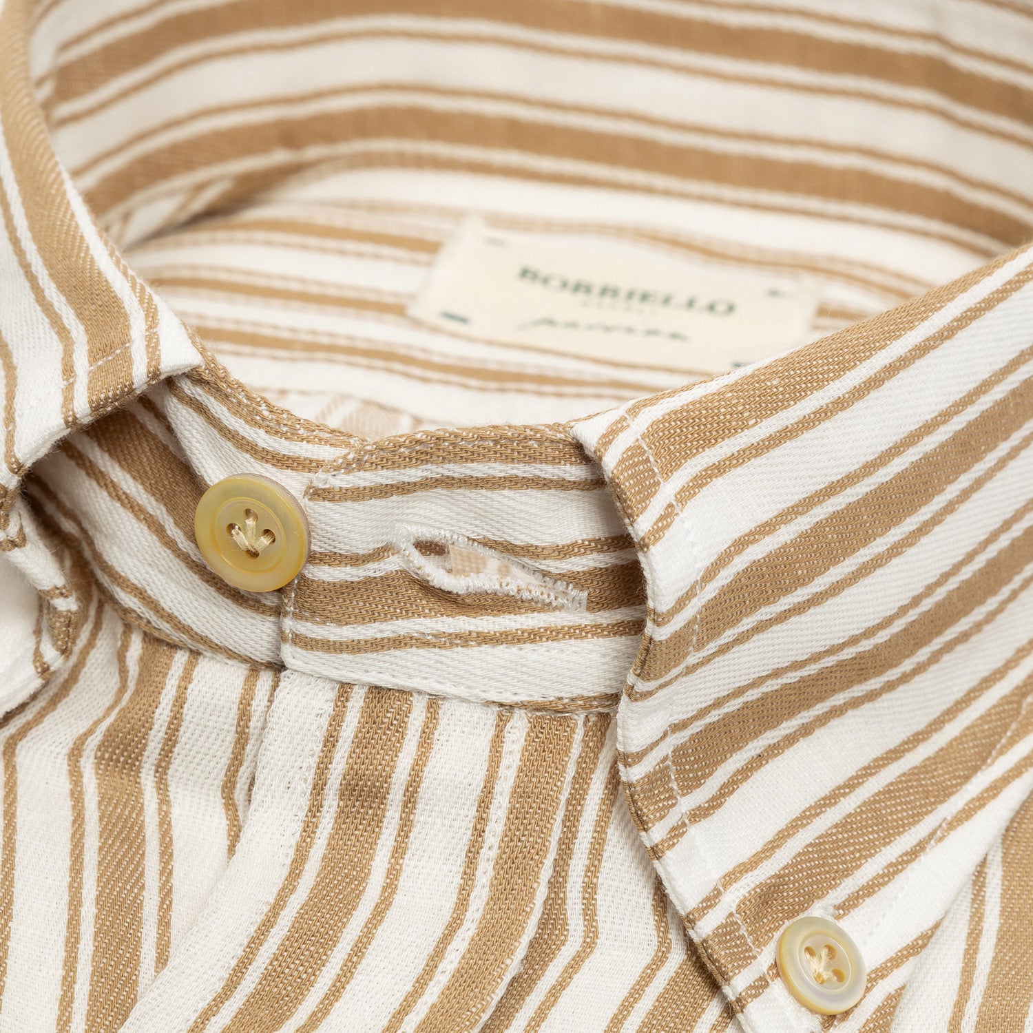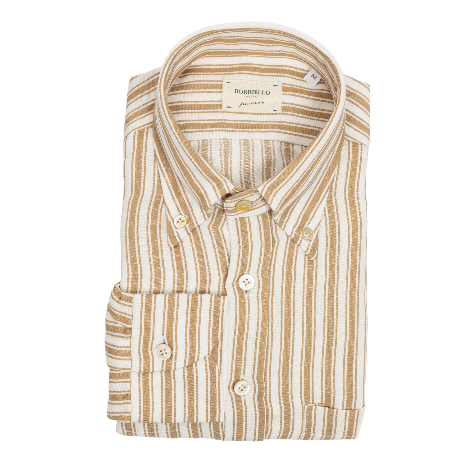 Der vorgewaschene Stoff aus Baumwolle und Leinen, in Verbindung mit dem superweichen Button Down-Kragen "Vomero" und einer Sportmanschette, macht dieses Hemd zu einer besonderen Spezialität aus der neapolitanischen Hemdenmanufaktur Borriello.