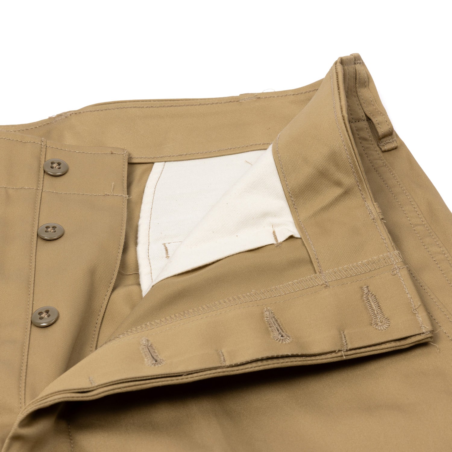 Made in Japan, these chinos have a higher rise and a classic silhouette that offers the wearer a straight fit. The fabric is made from dense cotton with an initial stiffness and a shiny sheen, similar to the original chino fabrics of the time.