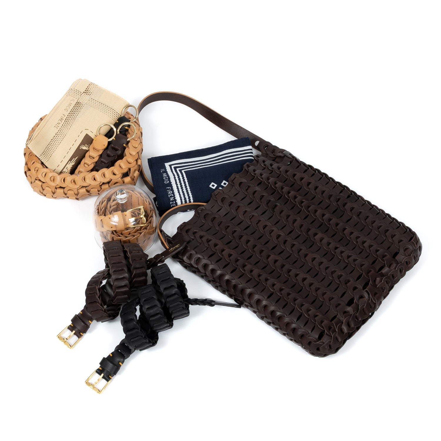 Made from Tuscan vachetta leather, which becomes softer and shinier with use, achieving a morbid charm of ageing.