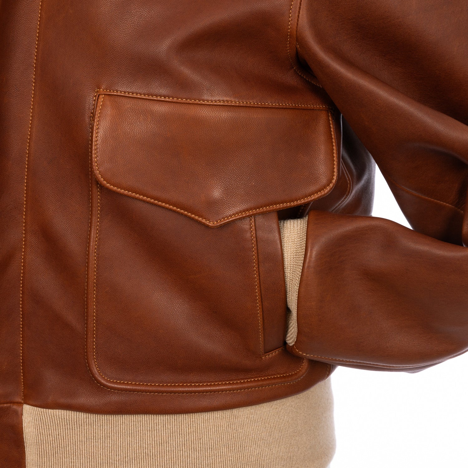 The "Bomber USAAF" flight jacket is based on the G1 and A2 models - US Air Force jackets from the 1930s. This classic bomber jacket, modernized by Chapal, is made of a fine vegetable-tanned and slightly shiny leather. A jacket as a style icon that is made to last and develops its own character through wear. Similar to a Patek Phillip, a piece that can be passed on to the next generation.