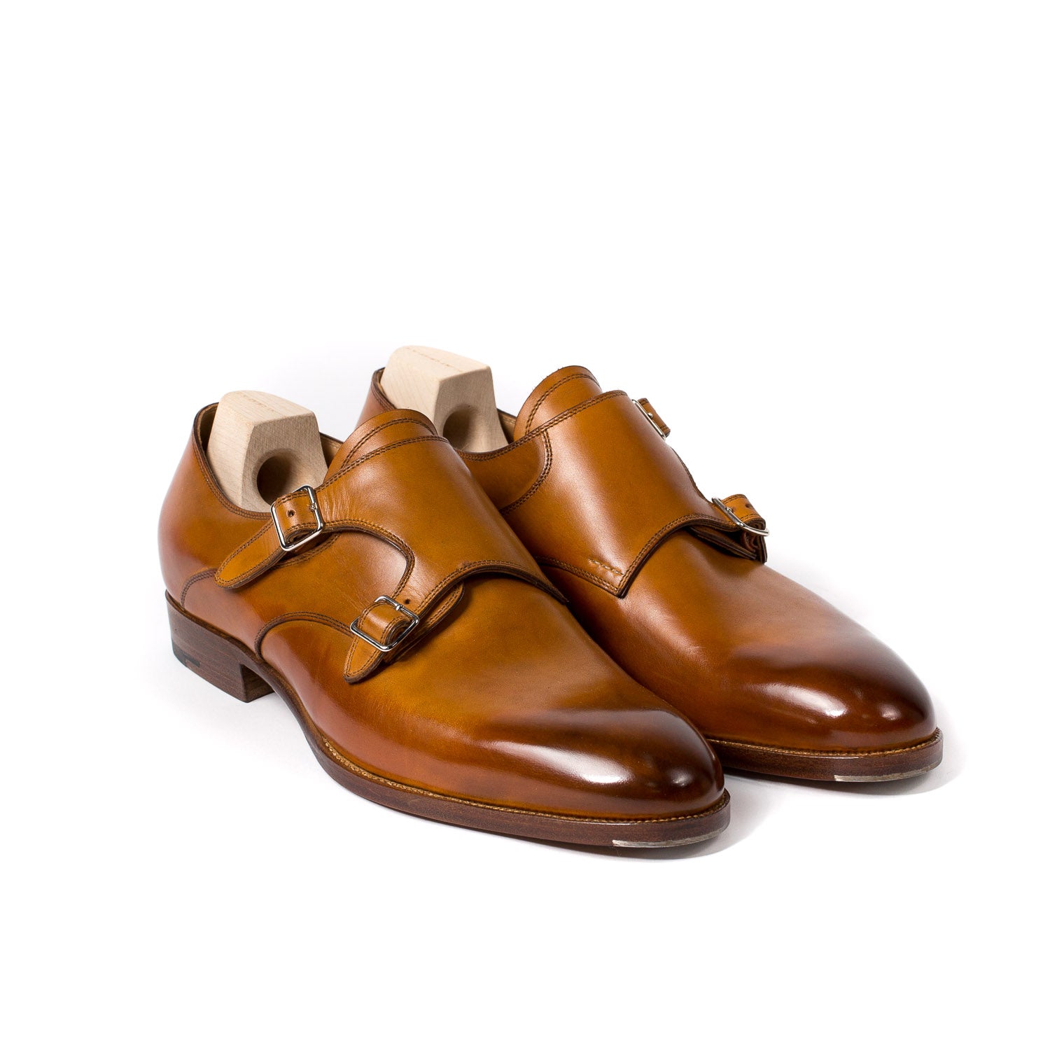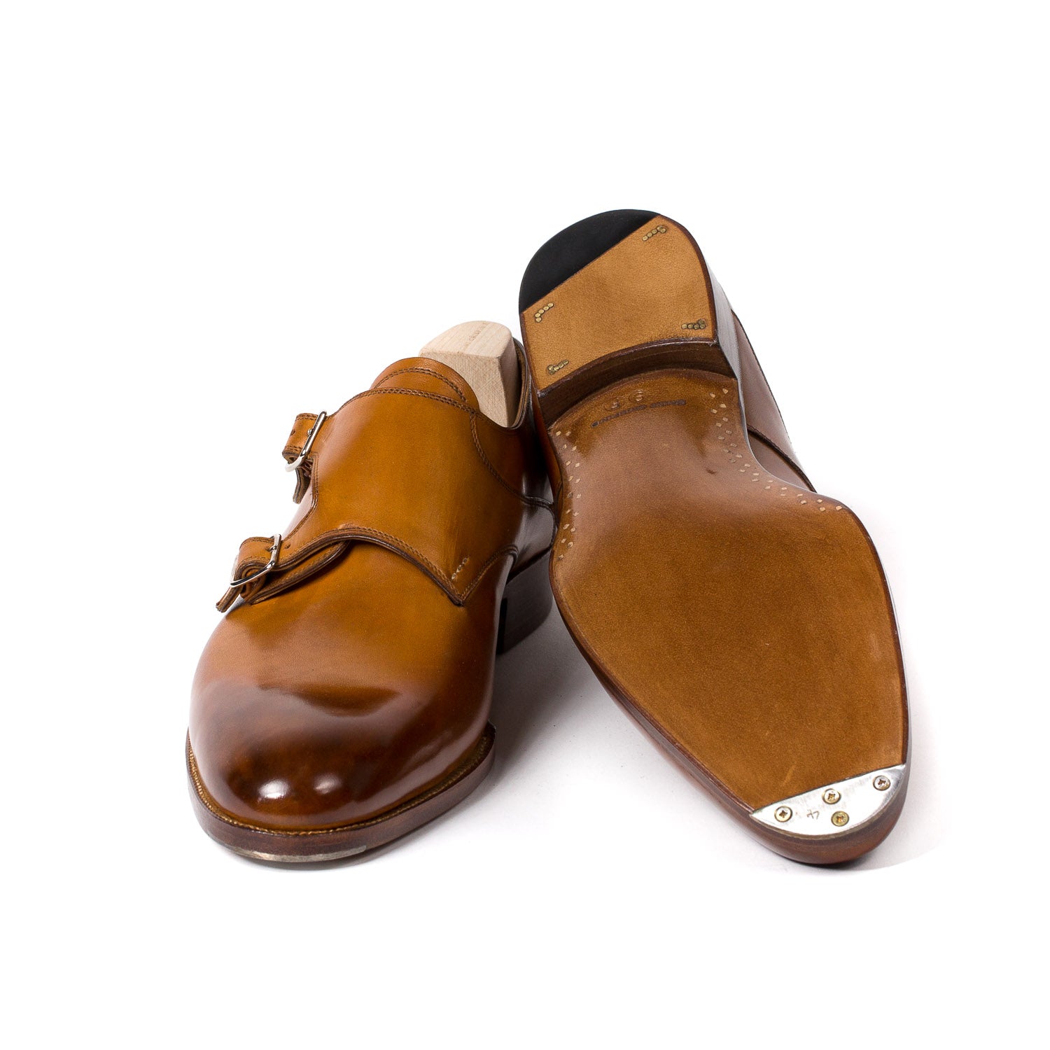 Double Monk "Modern Dandy" made of Light Brown Calfskin - purely handmade