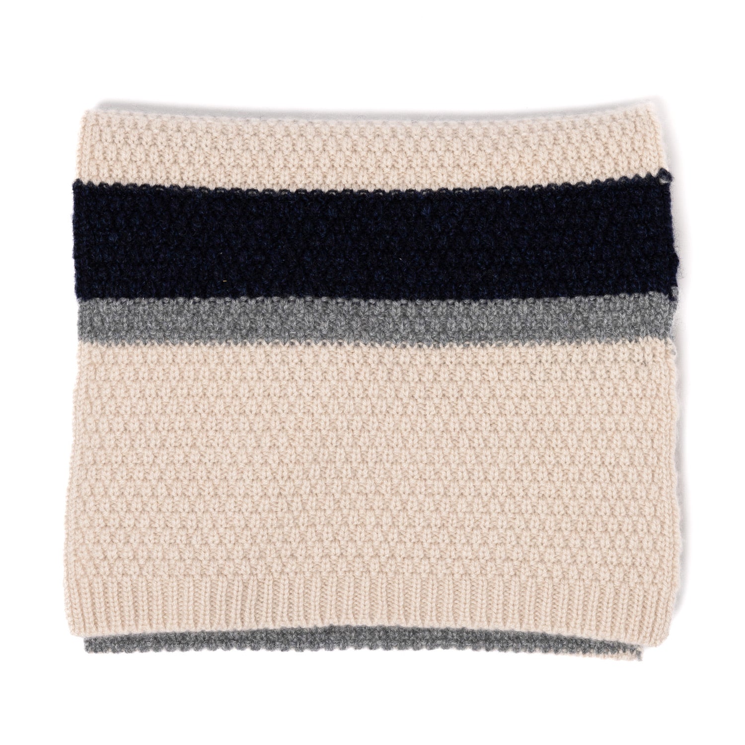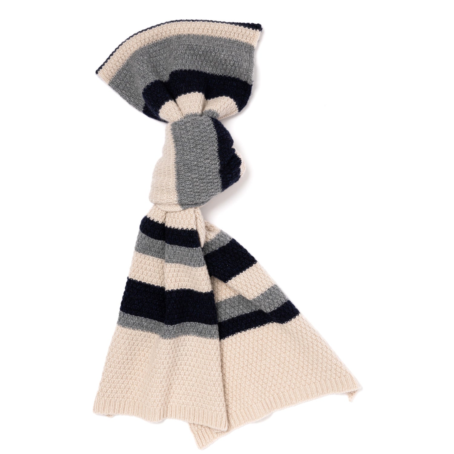 This beautiful scarf made from the finest Scottish cashmere has a very special soft feel and a sporty striped pattern.