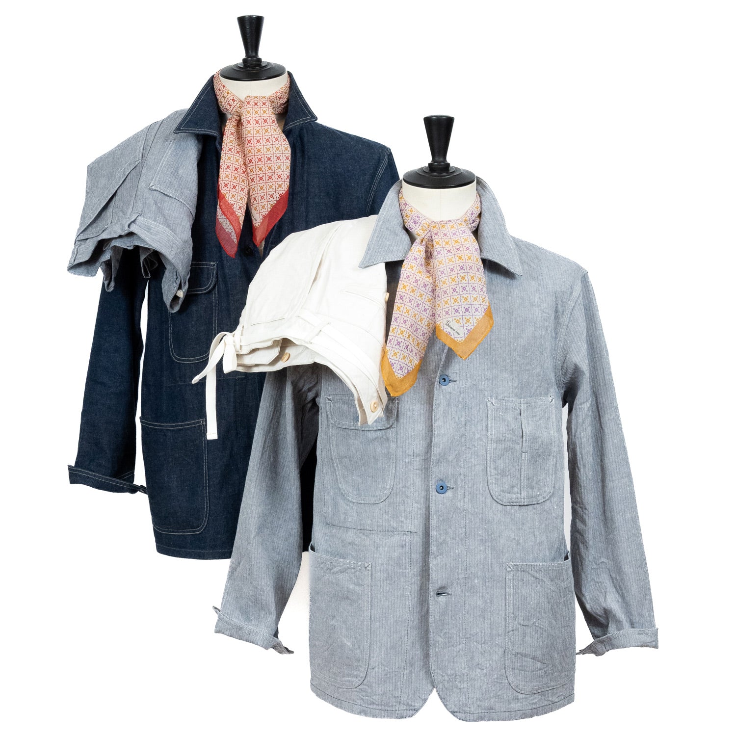 A jacket with universally practical pockets and the typical shape of historical workwear.