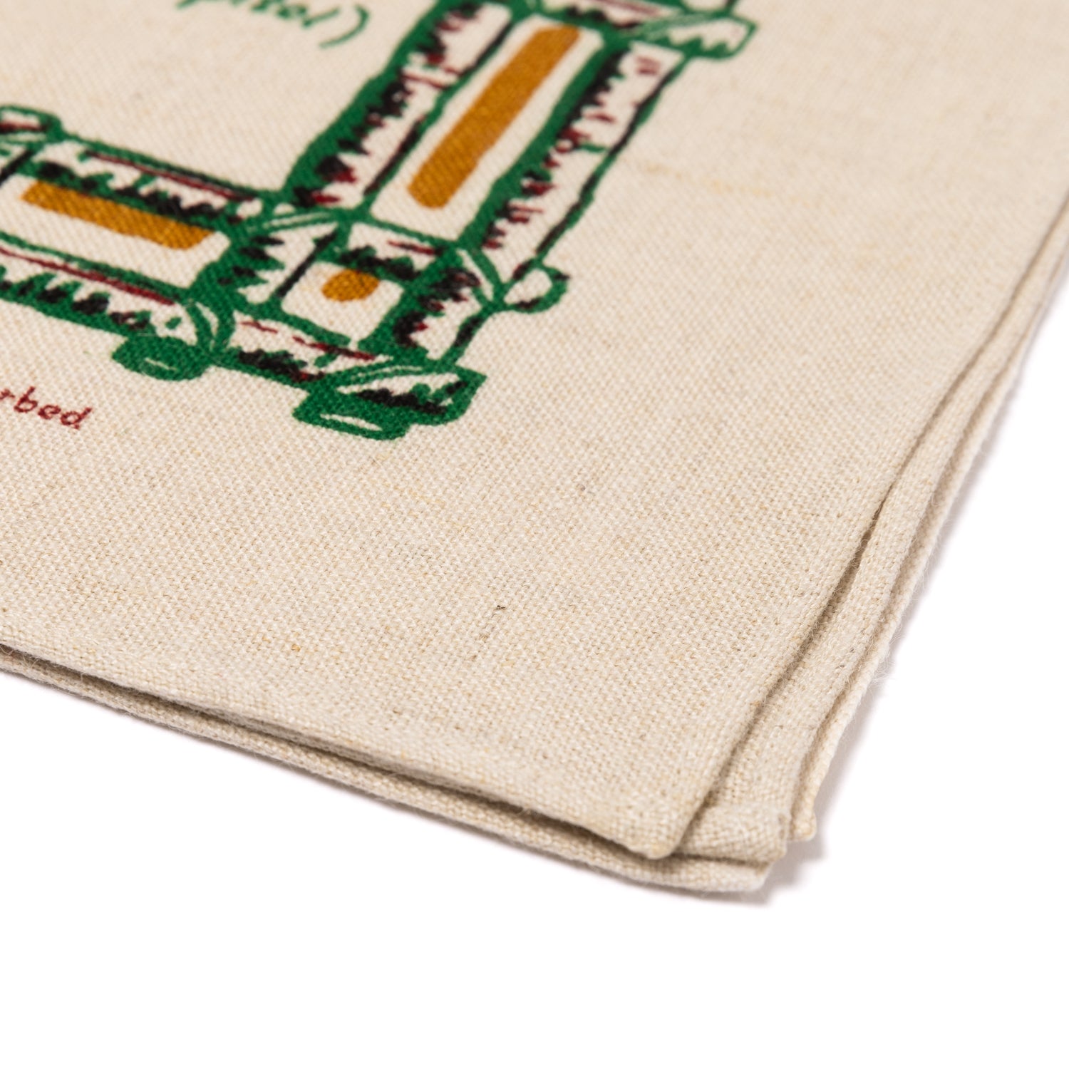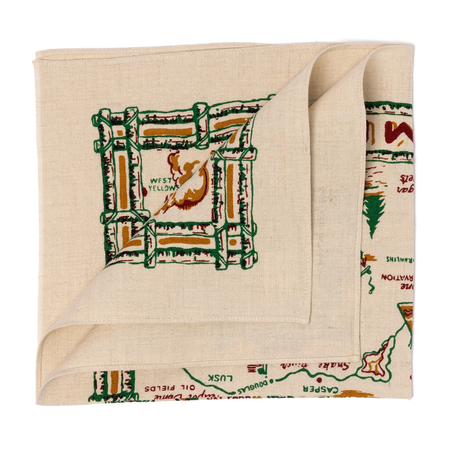 The Wyoming bandana from Rocky Mountain Featherbed is made in Japan from 100% linen and is printed throughout with intricate rodeo illustrations.