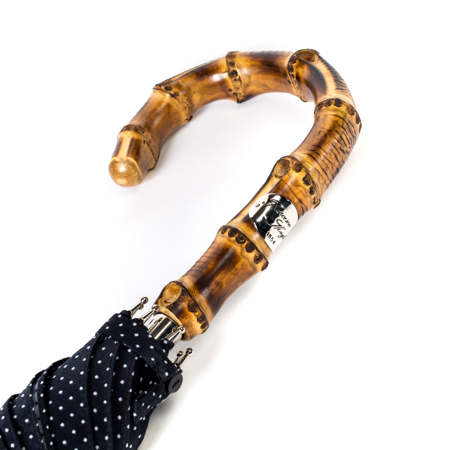 Dark Blue Dotted Umbrella "Traveller" with Bamboo Handle