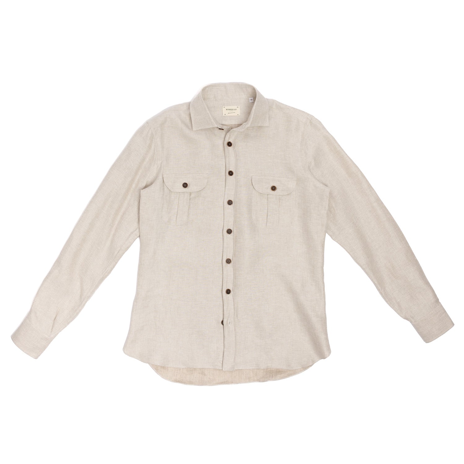 The generous cut and details, such as the 2 large patch pockets with "Soffietto" pleats, make this shirt a wonderful companion for spring and summer.