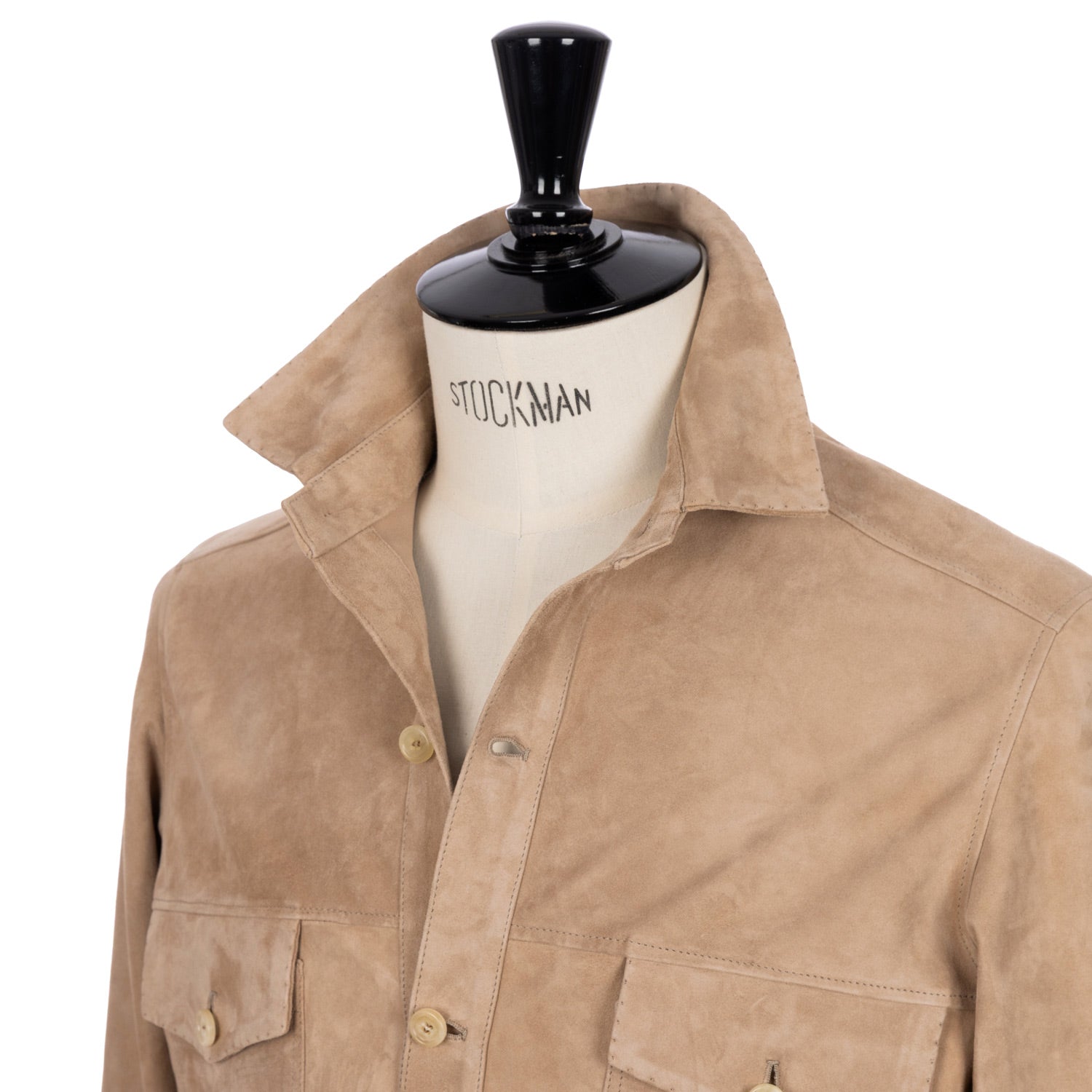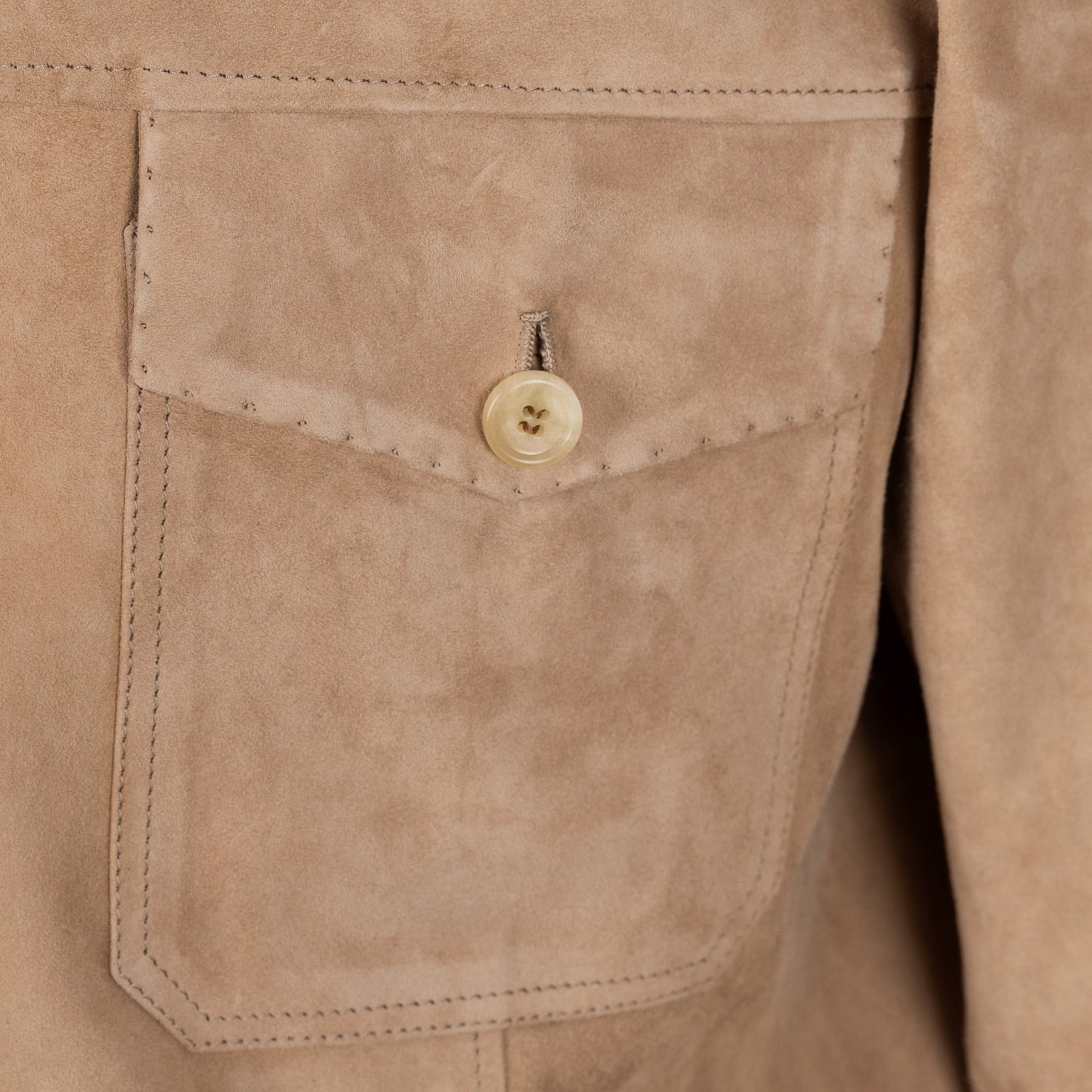 Here is a safari jacket in sartorial jacket style, made from the finest Sicilian goatskin suede. The very soft feel and light weight make this jacket the perfect companion for the warm season.