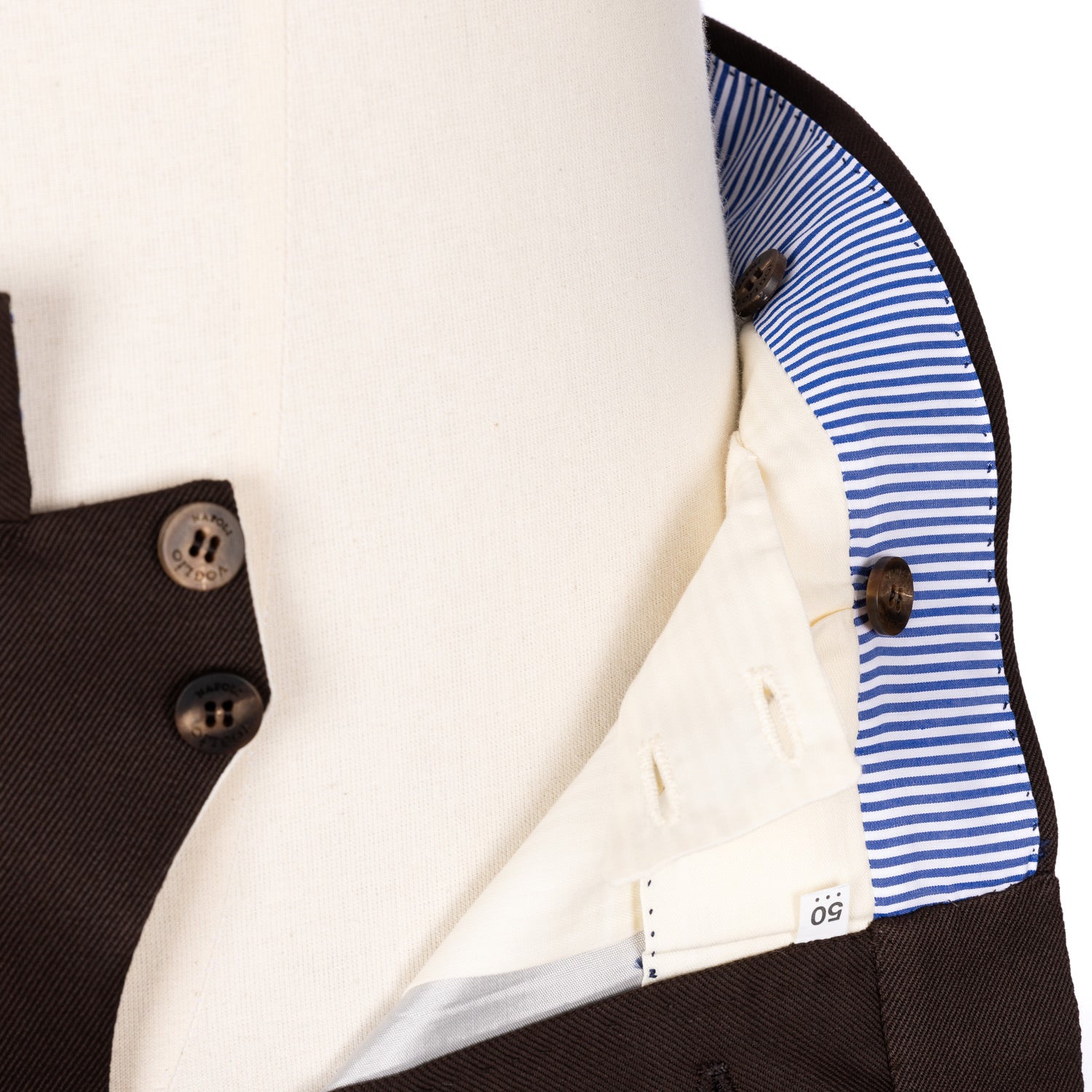 The Voglio family has combined sartorial details, such as the "Piega Sartoriale" or the "Cintura Anello Sartoriale", with a higher rise and a slightly wider leg. Trousers made entirely by hand as the incarnation of Neapolitan trouser tailoring.