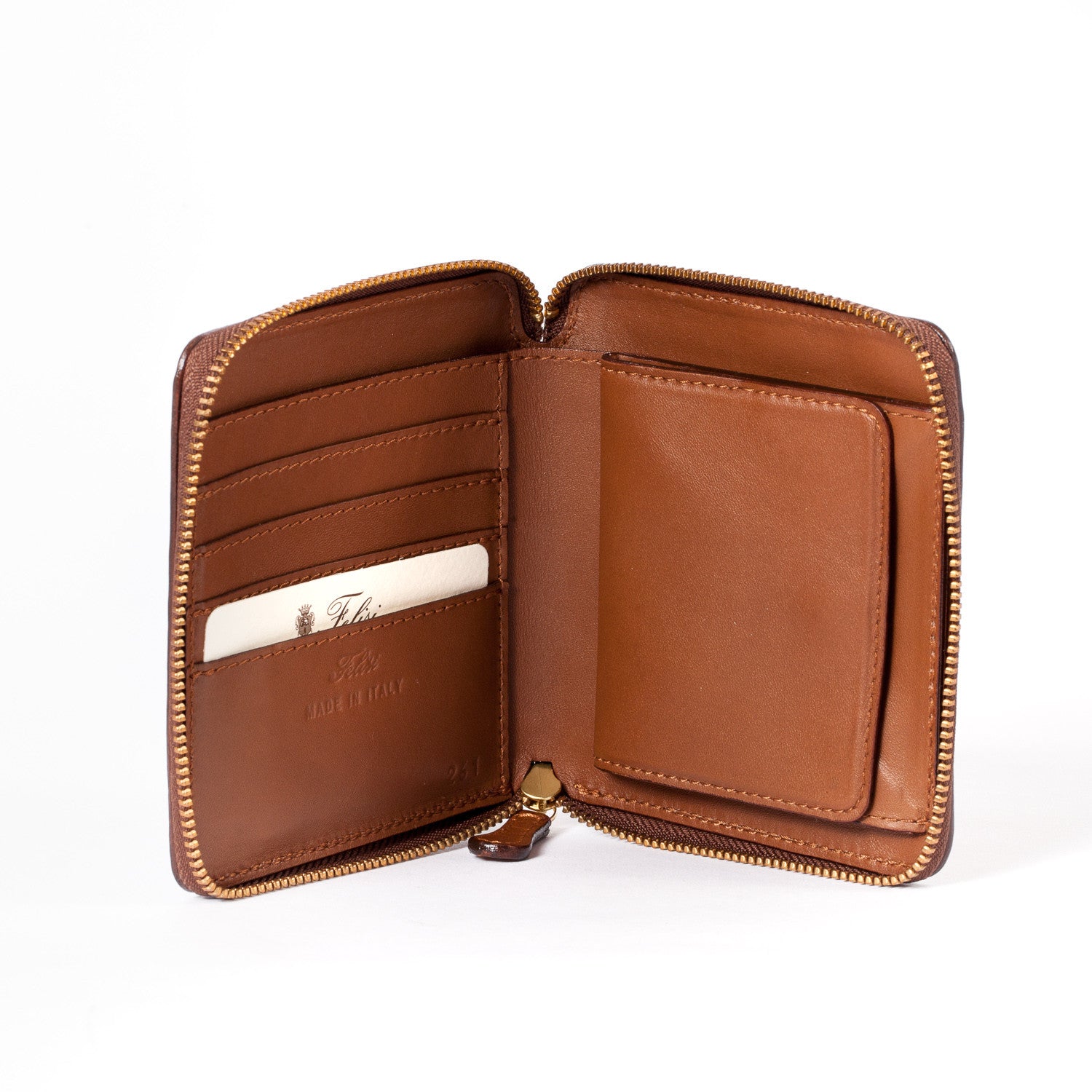 This zip wallet provides slightly more space than other Felisi products. In addition to a coin pocket, there are 6 card slots and a large pocket for bank notes. On the front, there is the Felisi logo.