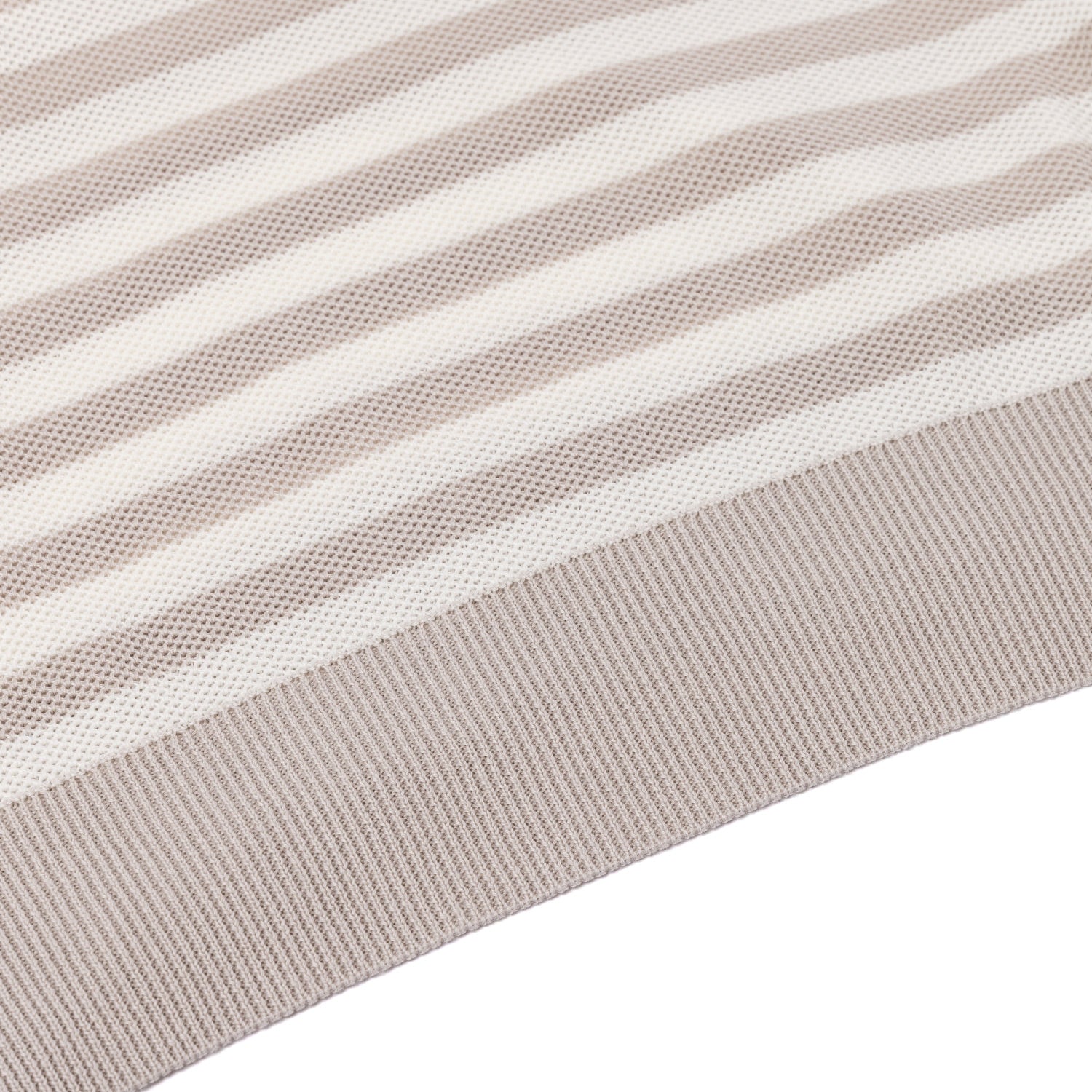 Here is a luxurious polo shirt made from the finest cotton. Fine stripes in a textured "Honeycom Stitch" fabric pattern. A wonderful look presented by a luxurious polo. The polo is finished with short sleeves and an "open polo" V-neck collar. A great homage to the summer knitwear culture of days gone by.