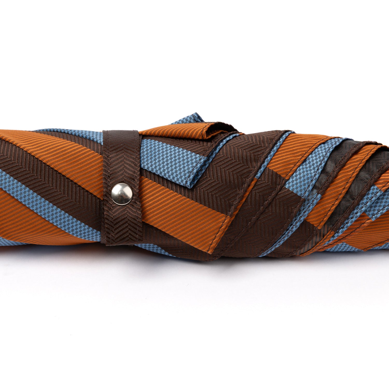 Der Regenschirm besitzt ein massives Holzgestell mit lederüberzogenem Griff aus Aluminium und macht ihn so, zu einem besonderen und handwerklich wertvollen Objekt. Der Griff lässt sich bei Bedarf als Sitz aufklappen und macht diesen Schirm so, beim nächsten Golfturnier, zu einem angenehmen Begleiter.