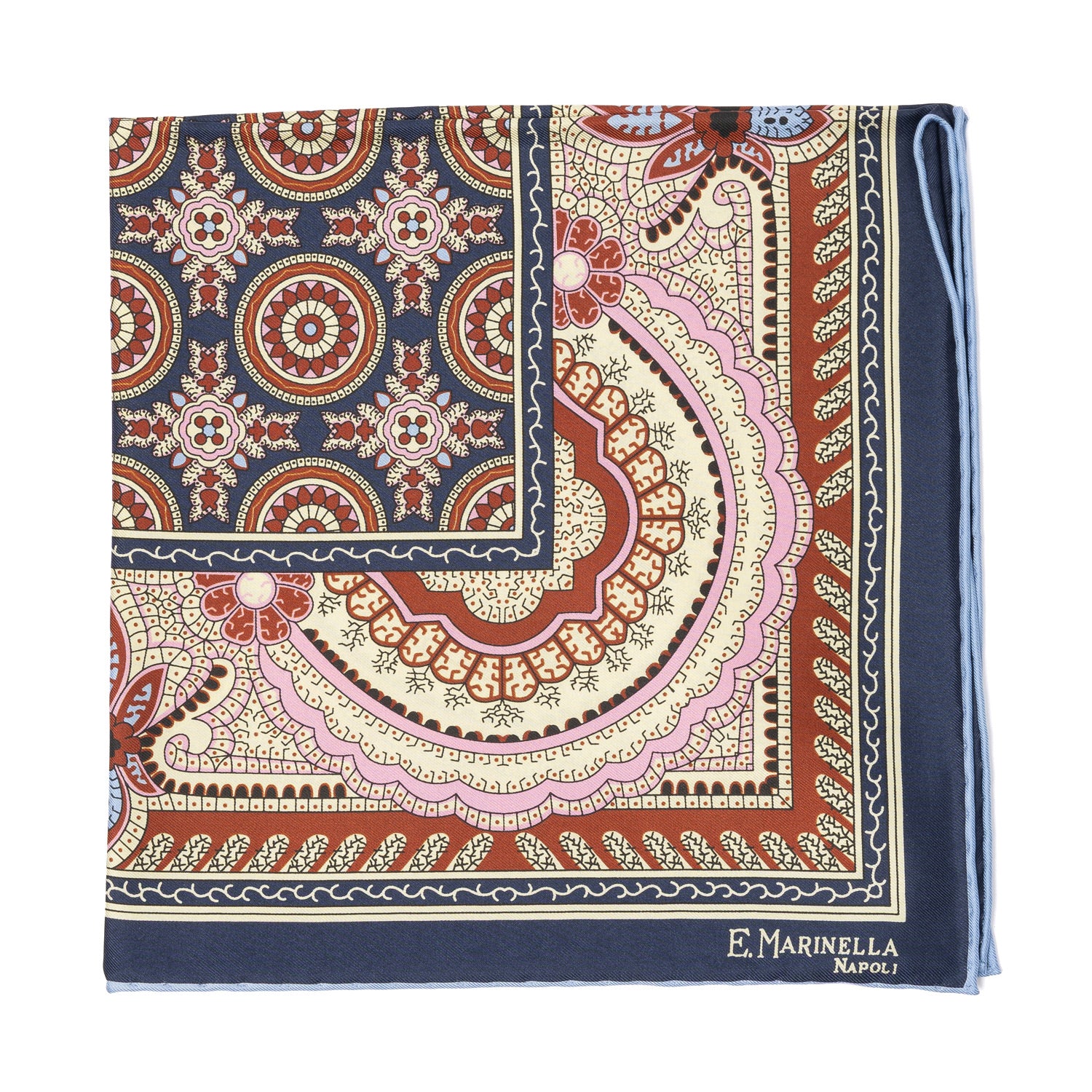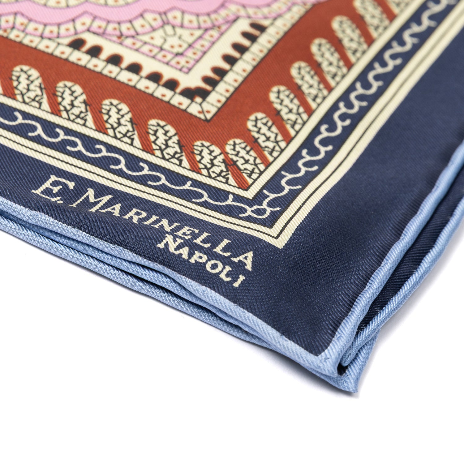E.Marinella steht für DIE neapolitanische Krawatte und ist durch diese, aus in England handbedruckter Seide, weltbekannt geworden. Hier auch als Einstecktuch in einzigartiger Qualität und natürlich von Hand rolliert.