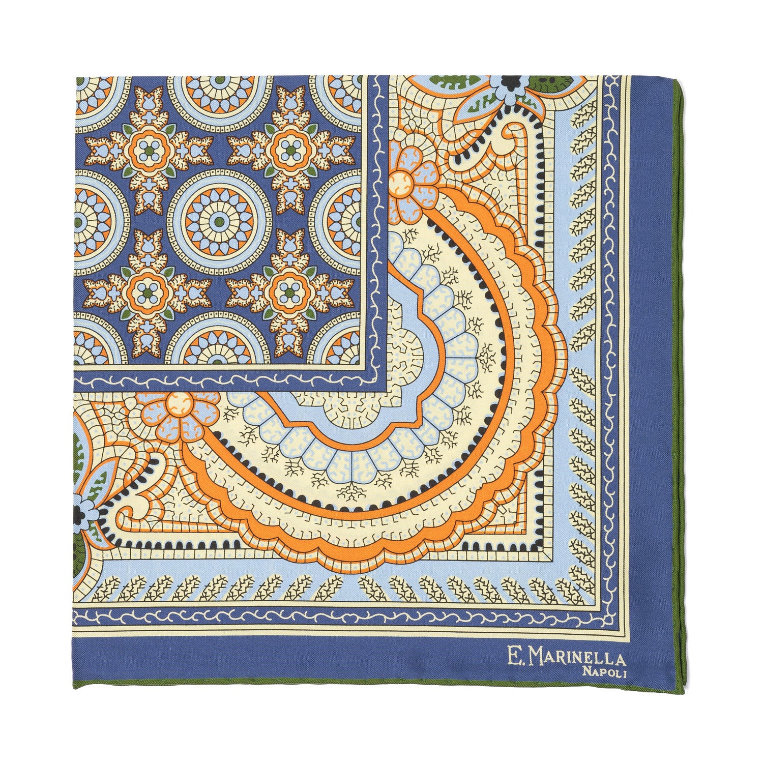 E.Marinella steht für DIE neapolitanische Krawatte und ist durch diese, aus in England handbedruckter Seide, weltbekannt geworden. Hier auch als Einstecktuch in einzigartiger Qualität und natürlich von Hand rolliert.