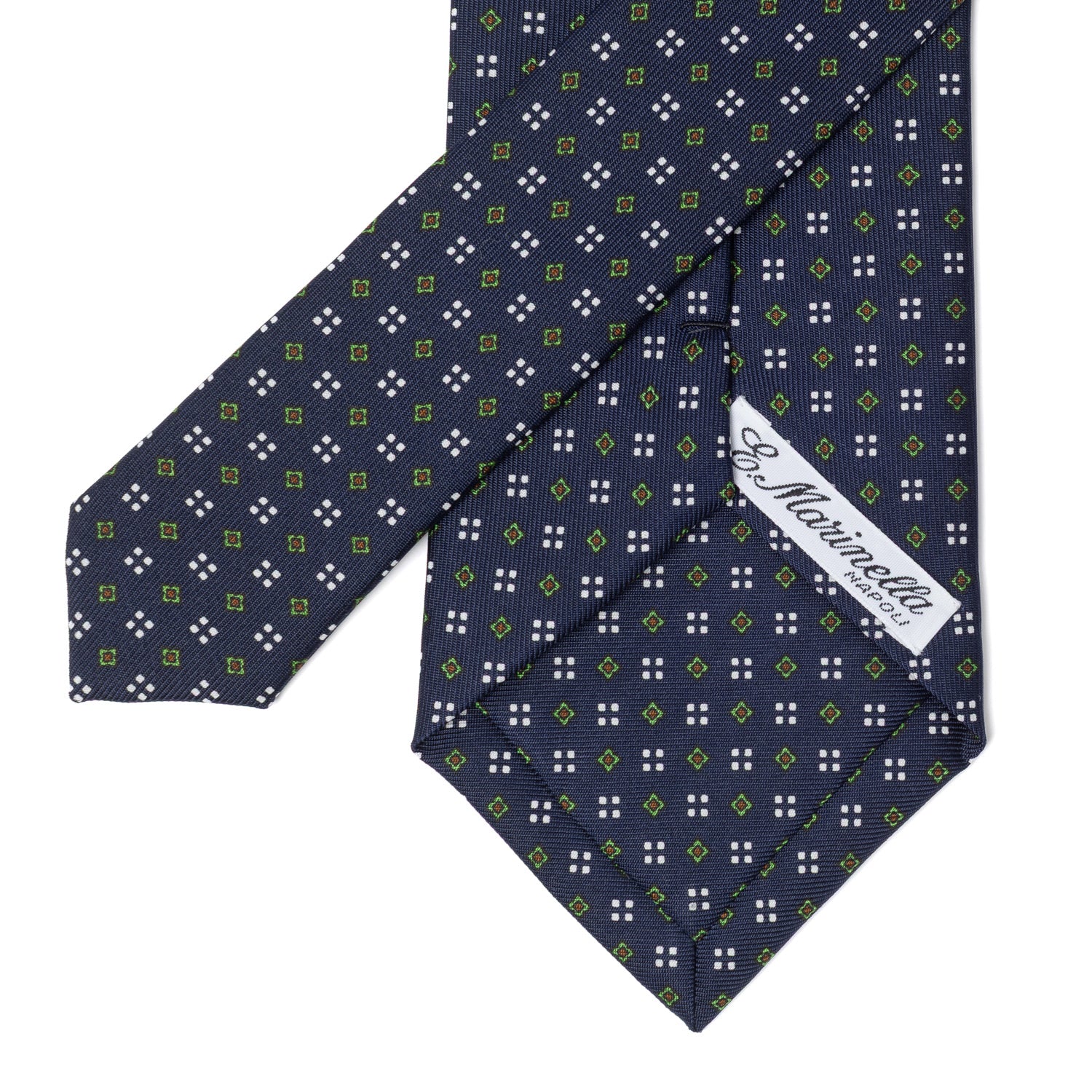 Endecken auch Sie die einzigartige Qualität dieser handgefertigten Krawatten, die in traditioneller "3-Fold" Technik und für Marinella heute typischer 9cm Breite gefaltet werden.