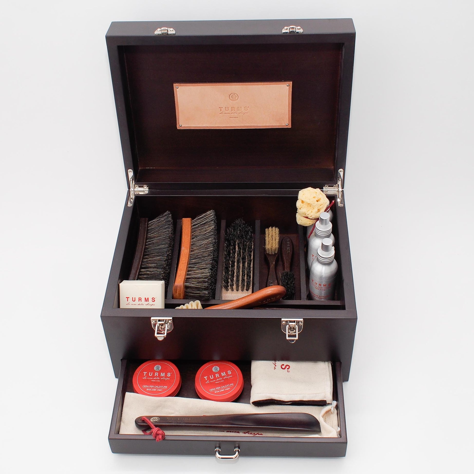 Schuhputzkasten "Luxury Case" aus dunkelbraunem Walnussholz - Handarbeit
