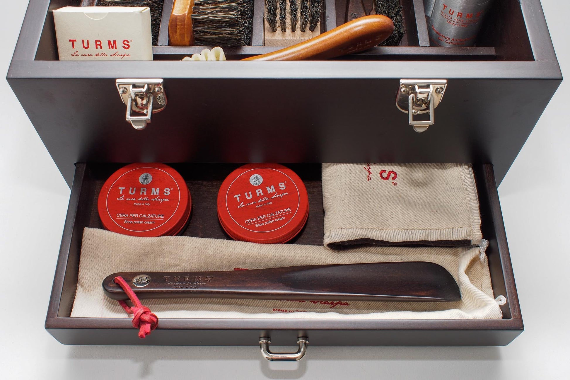 Eine Kur für Ihre Schuhe. Dies hat sich Samuele Chiurchiu, Gründer und Inhaber von Turms, zur Aufgabe gemacht und produziert luxuröse Accessoires für die Schuhpflege!