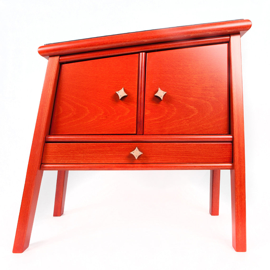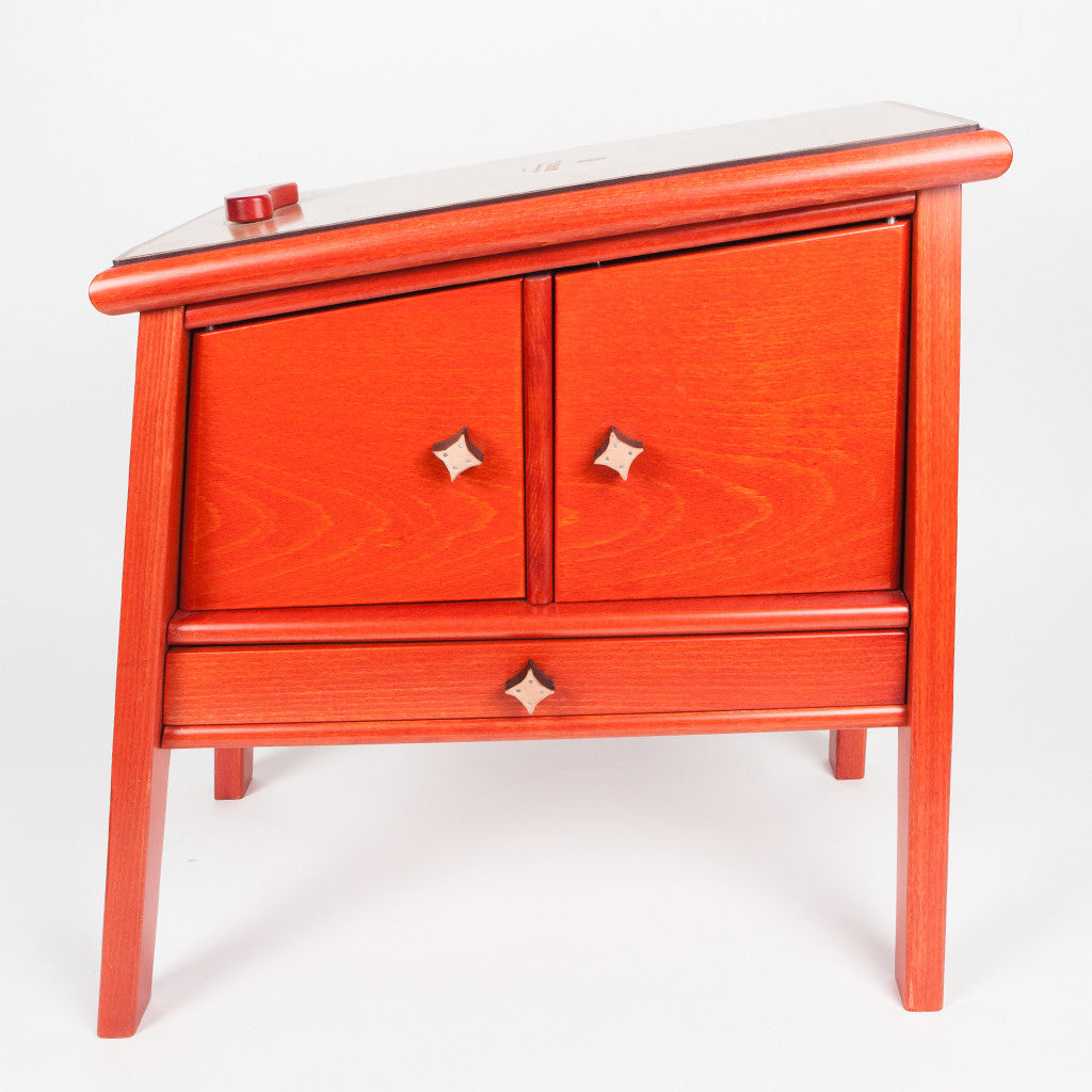 Schuhputzschrank "Mobiletto" aus rot lasiertem Buchenholz - Handarbeit