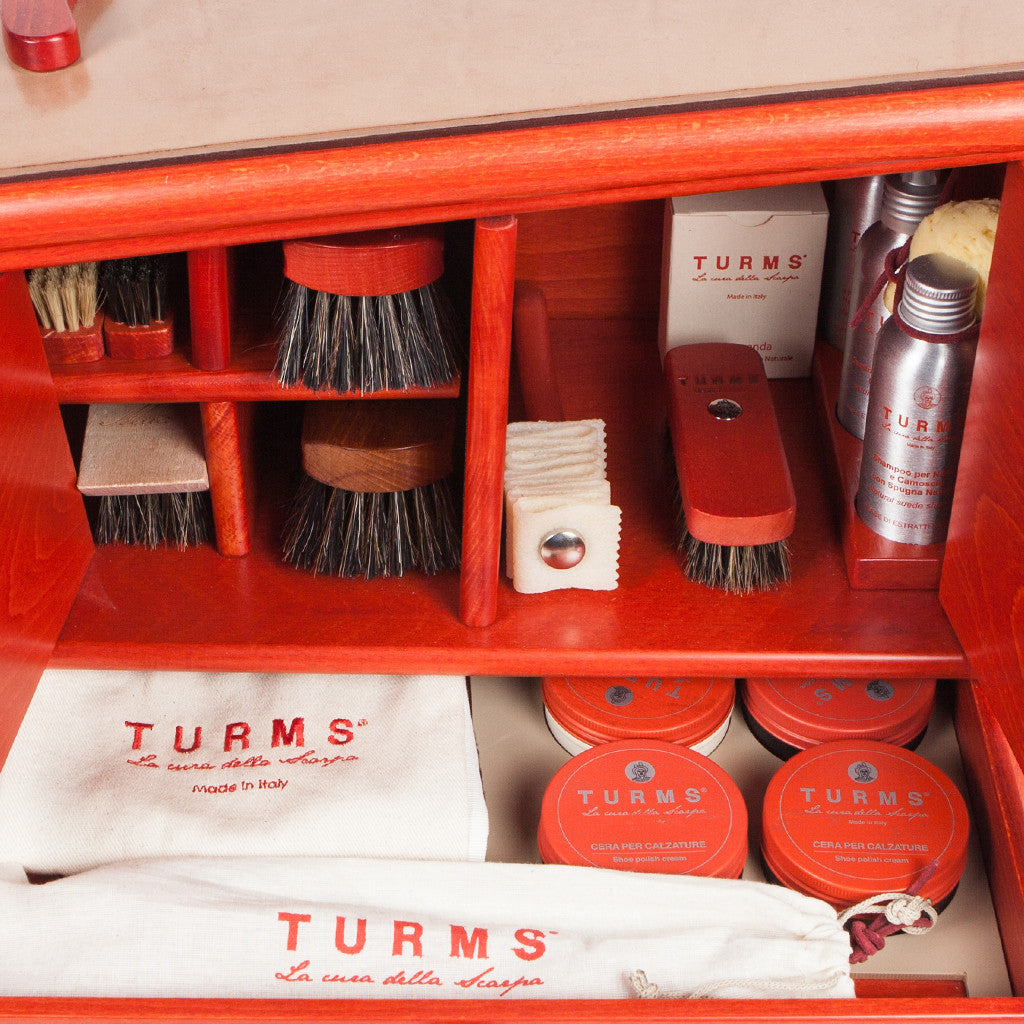 Eine Kur für Ihre Schuhe. Dies hat sich Samuele Chiurchiu, Gründer und Inhaber von Turms, zur Aufgabe gemacht und produziert luxuröse Accessoires für die Schuhpflege!