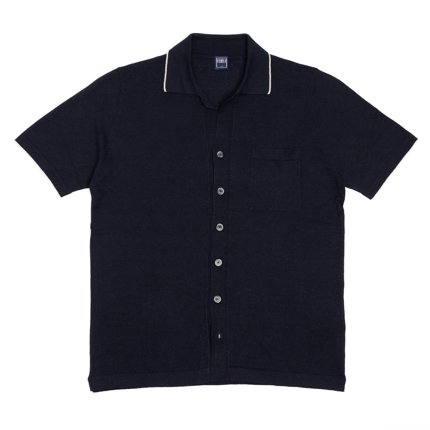 Modernes Strickhemd aus feinstem "Tropico" Leinen Mix.